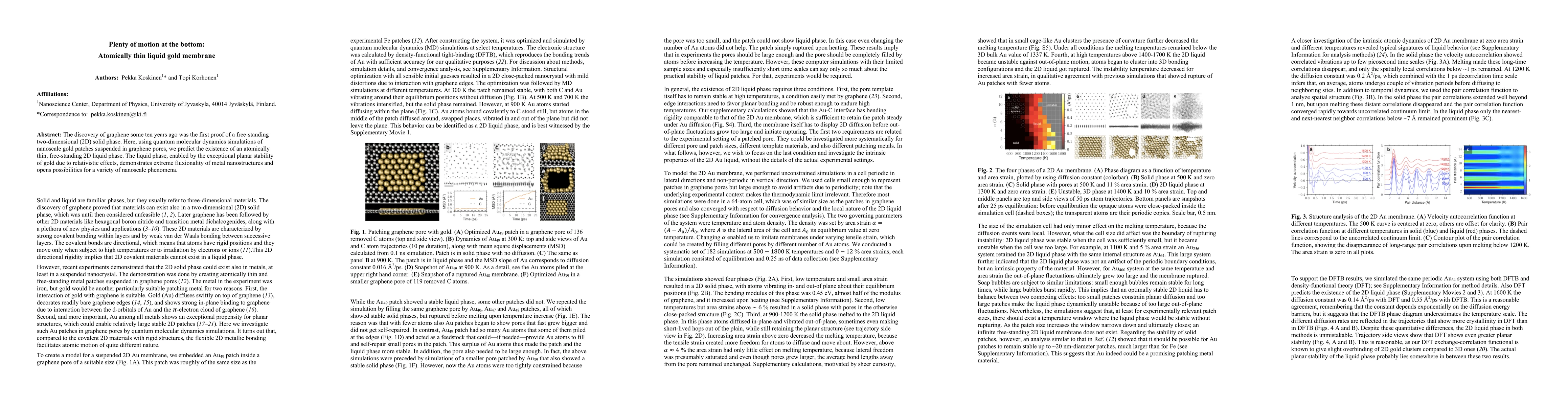 This paper predicts the existence of an atomically thin, free-standing liquid phase of gold enabled by its exceptional planar stability due to relativistic effects, revealing extreme fluxionality of metal nanostructures and potential for nanoscale phenomena.