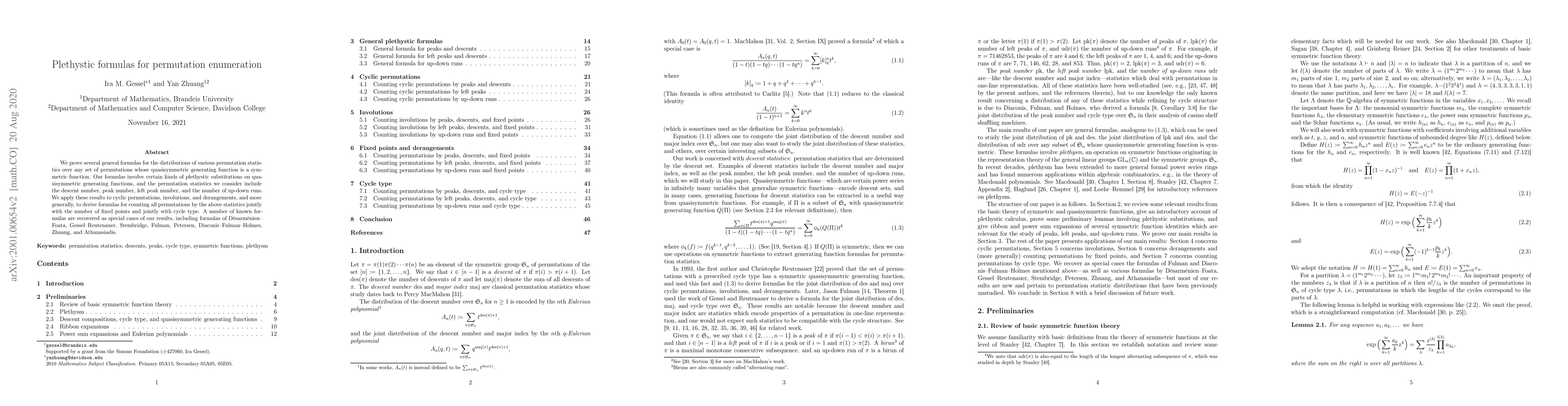The paper develops general formulas for permutation statistics like descent number, peak number, and up-down runs using plethystic substitutions on quasisymmetric generating functions. These results apply to various types of permutations and recover known formulas as special cases.