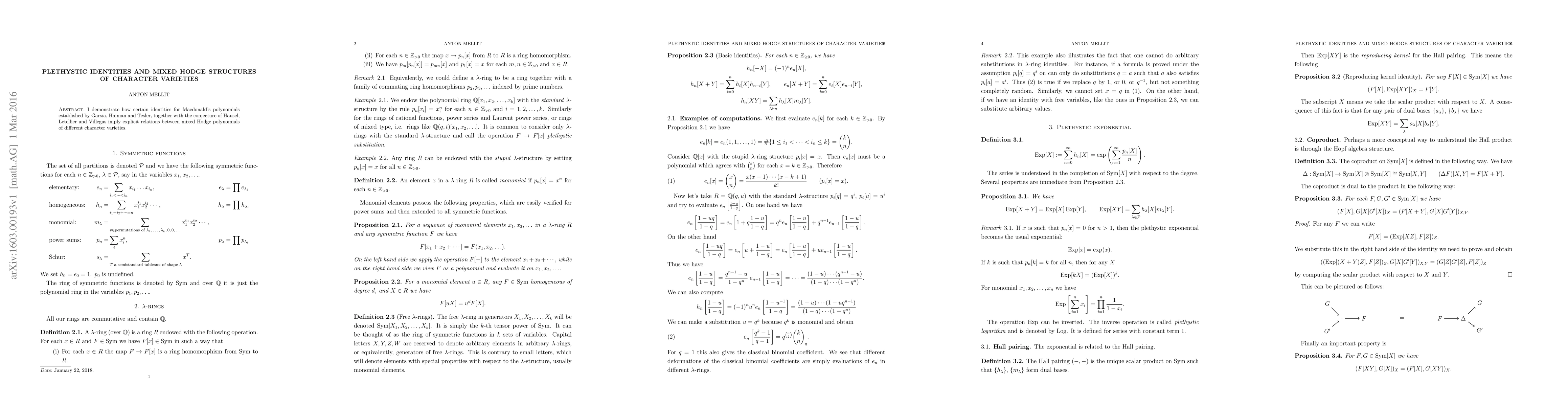 I demonstrate how certain identities for Macdonald's polynomials established by Garsia, Haiman and Tesler, together with the conjecture of Hausel, Letellier and Villegas imply explicit relations between mixed Hodge polynomials of different character varieties.