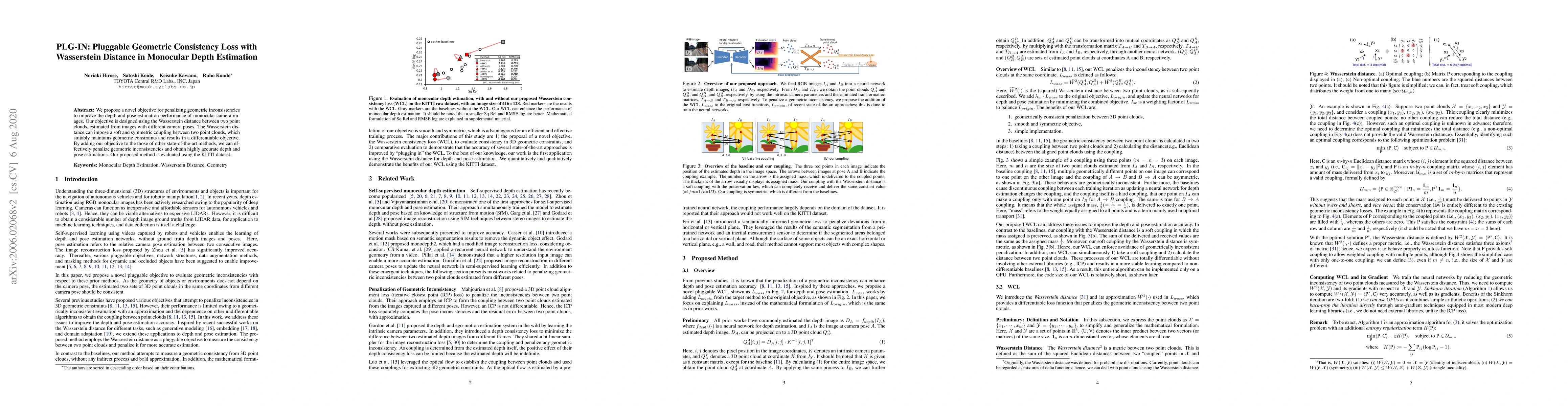 We propose a novel objective for penalizing geometric inconsistencies to improve the depth and pose estimation performance of monocular camera images. Our objective is designed using the Wasserstein distance between two point clouds, estimated from images with different camera poses. The Wasserstein distance can impose a soft and symmetric coupling between two point clouds, which suitably maintains geometric constraints and results in a differentiable objective. By adding our objective to the those of other state-of-the-art methods, we can effectively penalize geometric inconsistencies and obtain highly accurate depth and pose estimations. Our proposed method is evaluated using the KITTI dataset.