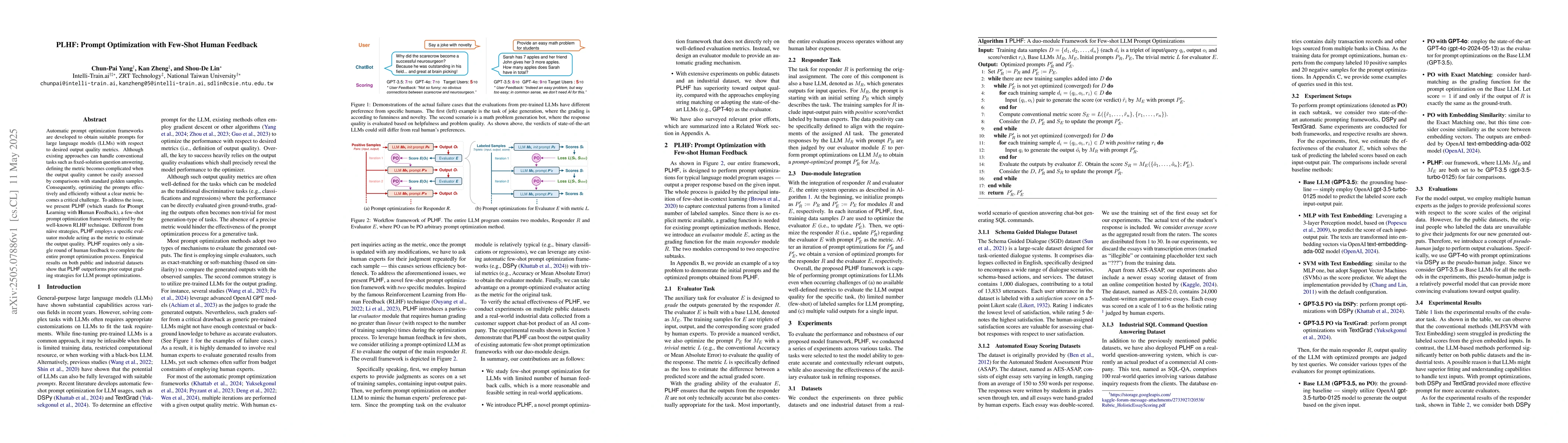 PLHF is a few-shot prompt optimization framework that leverages human feedback to improve output quality of large language models without requiring a clear metric. It outperforms prior strategies in both public and industrial datasets with only one round of human feedback.