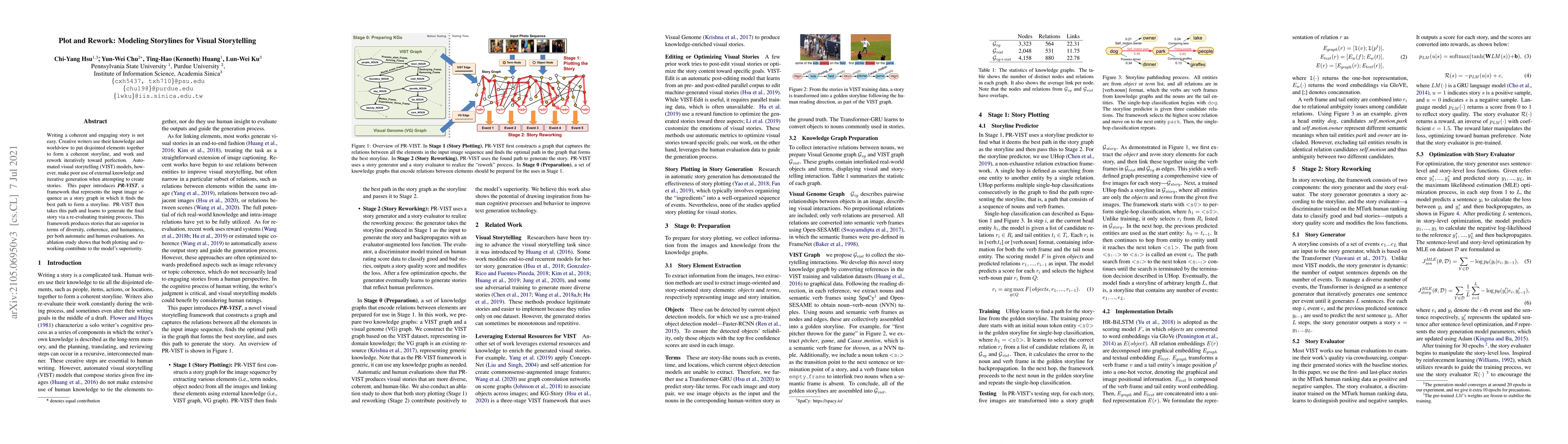 This paper introduces PR-VIST, a framework for automated visual storytelling that models storylines by representing input image sequences as story graphs and iteratively refines the generated stories. The framework's superior performance in diversity, coherence, and humanness is attributed to both plotting and reworking processes.