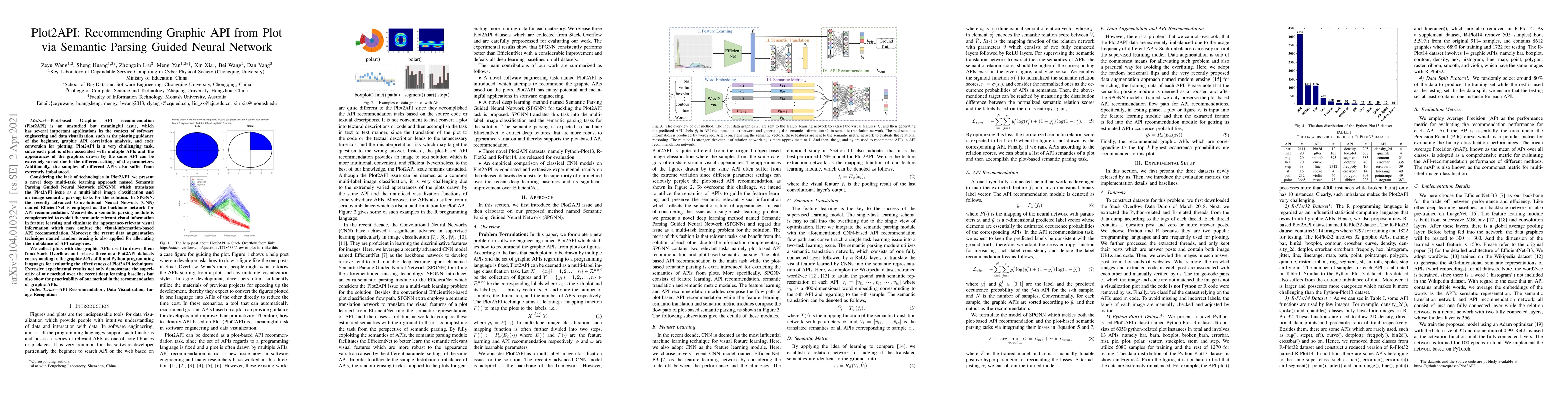 The paper introduces Plot2API, a novel deep multi-task learning approach using Semantic Parsing Guided Neural Network (SPGNN) to recommend graphic APIs from plots. The method employs EfficientNet for feature extraction and a semantic parsing module to enhance API recommendation accuracy, addressing the challenge of API category imbalance with random erasing.
