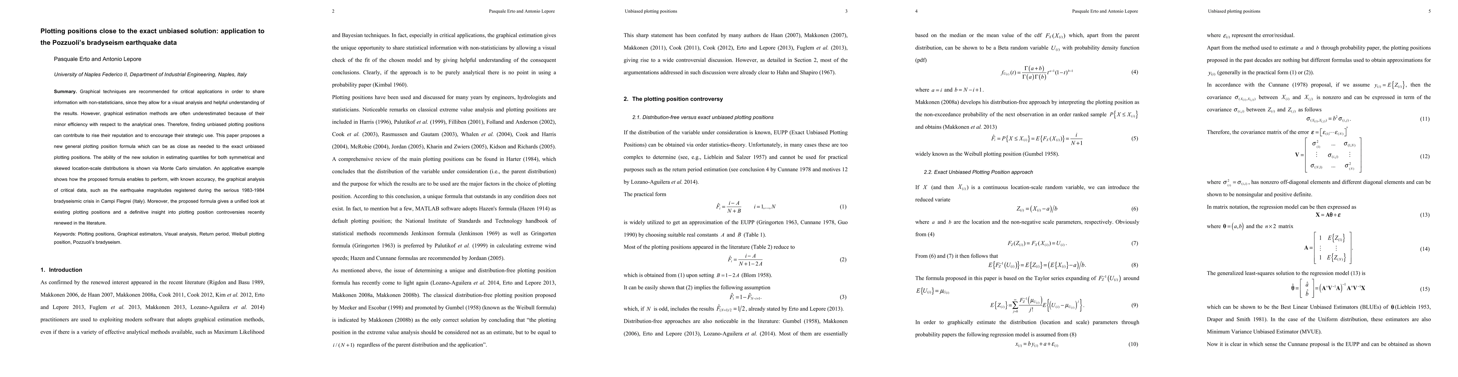 This paper introduces a new plotting position formula that closely approximates exact unbiased plotting positions, enhancing graphical estimation methods. The formula is demonstrated through Monte Carlo simulations and applied to the 1983-1984 Pozzuoli bradyseism earthquake data, offering a unified approach to existing plotting positions and resolving recent controversies.