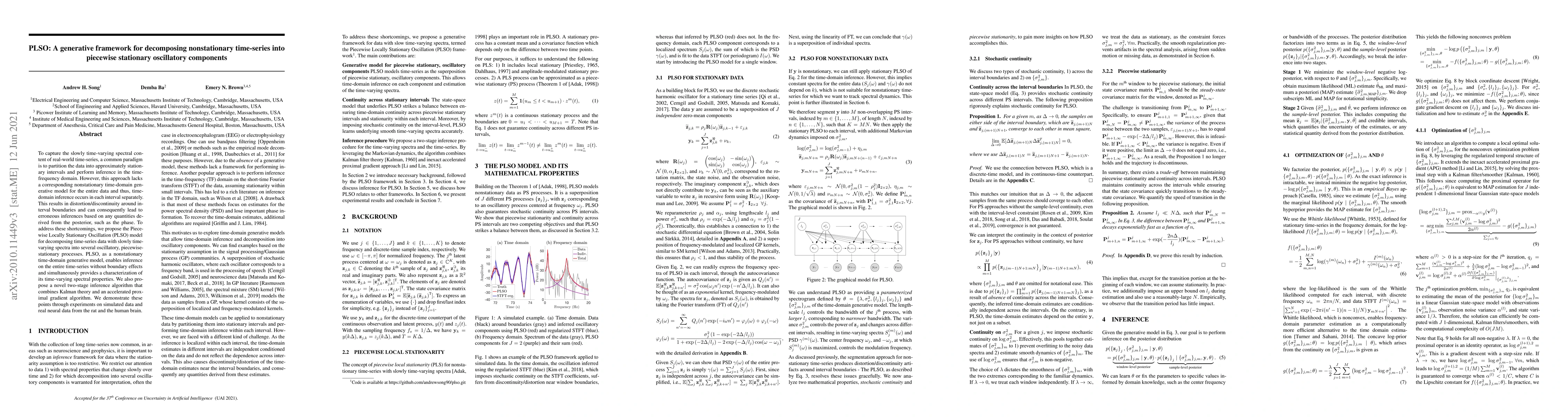 The PLSO model decomposes nonstationary time-series into piecewise stationary oscillatory components, providing a nonstationary time-domain generative model for improved inference without boundary effects. A novel two-stage inference algorithm combines Kalman theory and an accelerated proximal gradient method, demonstrated on both simulated and real neural data.