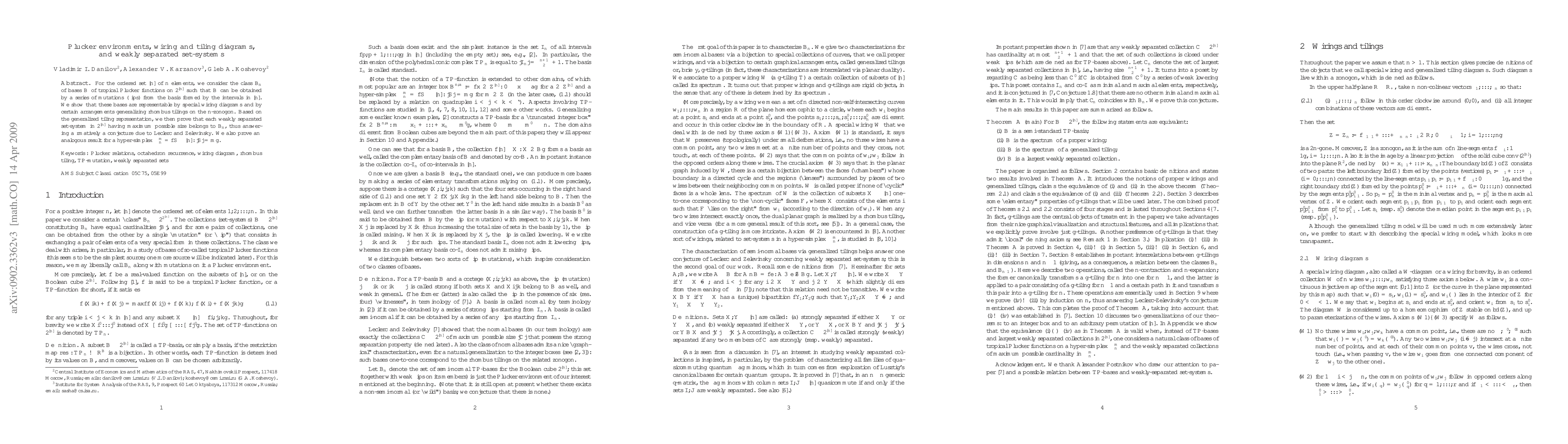 For the ordered set $[n]$ of $n$ elements, we consider the class $\Bscr_n$ of bases $B$ of tropical Pl\"ucker functions on $2^{[n]}$ such that $B$ can be obtained by a series of mutations (flips) from the basis formed by the intervals in $[n]$. We show that these bases are representable by special wiring diagrams and by certain arrangements generalizing rhombus tilings on the $n$-zonogon. Based on the generalized tiling representation, we then prove that each weakly separated set-system in $2^{[n]}$ having maximum possible size belongs to $\Bscr_n$, thus answering affirmatively a conjecture due to Leclerc and Zelevinsky. We also prove an analogous result for a hyper-simplex $\Delta_n^m=\{S\subseteq[n]\colon |S|=m\}$.