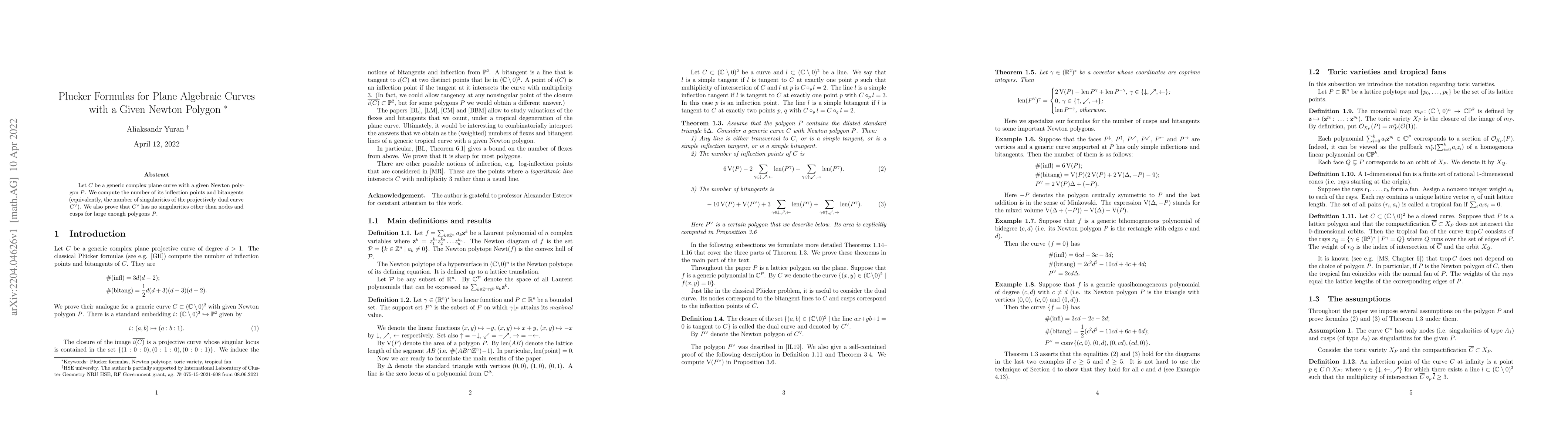 This paper computes the number of inflection points and bitangents for generic complex plane curves defined by a given Newton polygon $P$, and proves that the projectively dual curve $C^\vee$ has no singularities other than nodes and cusps for sufficiently large polygons $P$.