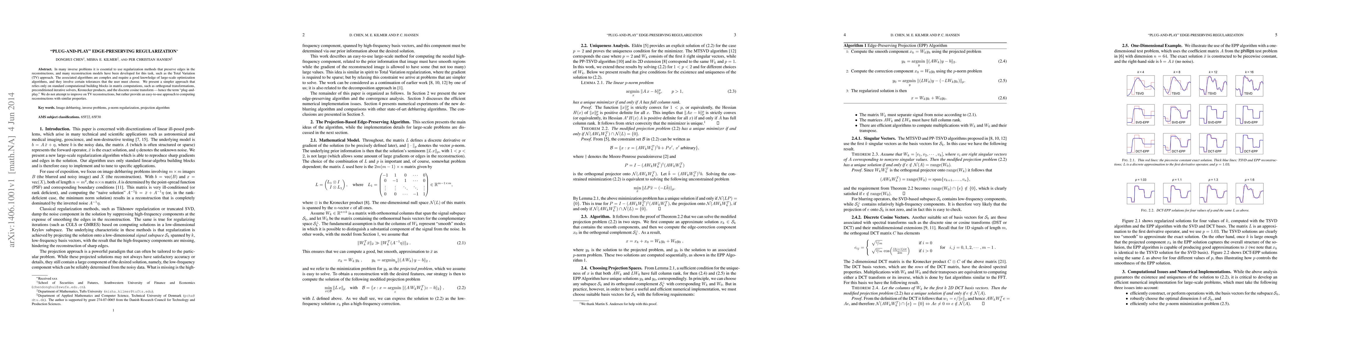 This paper introduces a "plug-and-play" method for edge-preserving regularization in inverse problems, simplifying complex Total Variation approaches using standard matrix computation techniques like orthogonal transformations and iterative solvers. The goal is to provide an easy-to-use alternative without improving upon existing reconstructions.