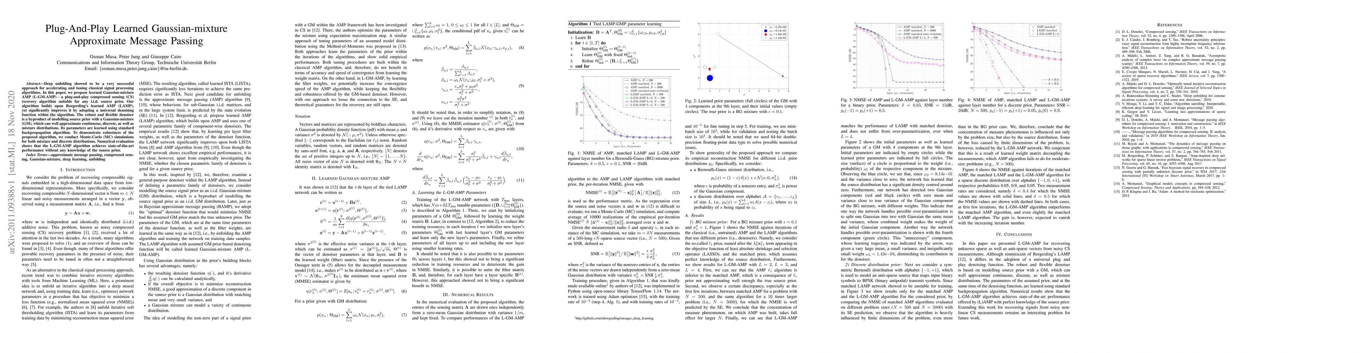 This paper proposes a learned Gaussian-mixture Approximate Message Passing (L-GM-AMP) algorithm for compressed sensing recovery, which outperforms existing methods by using a universal denoising function modeled with a Gaussian-mixture to approximate various source priors. The algorithm achieves state-of-the-art performance without prior knowledge of the source distribution.
