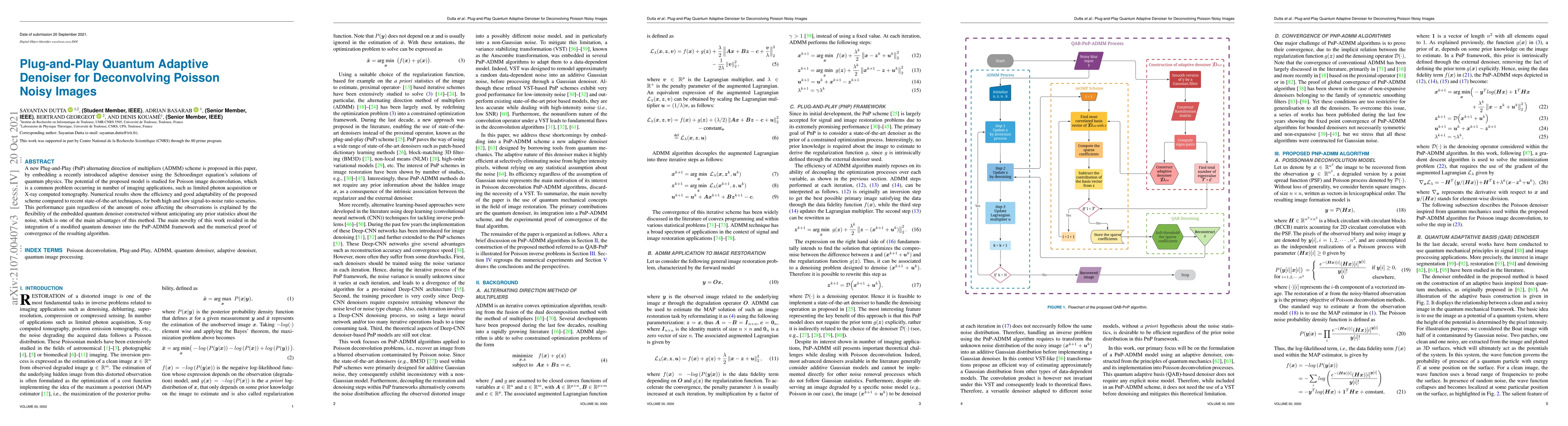 A new Plug-and-Play (PnP) alternating direction of multipliers (ADMM) scheme is proposed in this paper, by embedding a recently introduced adaptive denoiser using the Schroedinger equation's solutions of quantum physics. The potential of the proposed model is studied for Poisson image deconvolution, which is a common problem occurring in number of imaging applications, such as limited photon acquisition or X-ray computed tomography. Numerical results show the efficiency and good adaptability of the proposed scheme compared to recent state-of-the-art techniques, for both high and low signal-to-noise ratio scenarios. This performance gain regardless of the amount of noise affecting the observations is explained by the flexibility of the embedded quantum denoiser constructed without anticipating any prior statistics about the noise, which is one of the main advantages of this method. The main novelty of this work resided in the integration of a modified quantum denoiser into the PnP-ADMM framework and the numerical proof of convergence of the resulting algorithm.