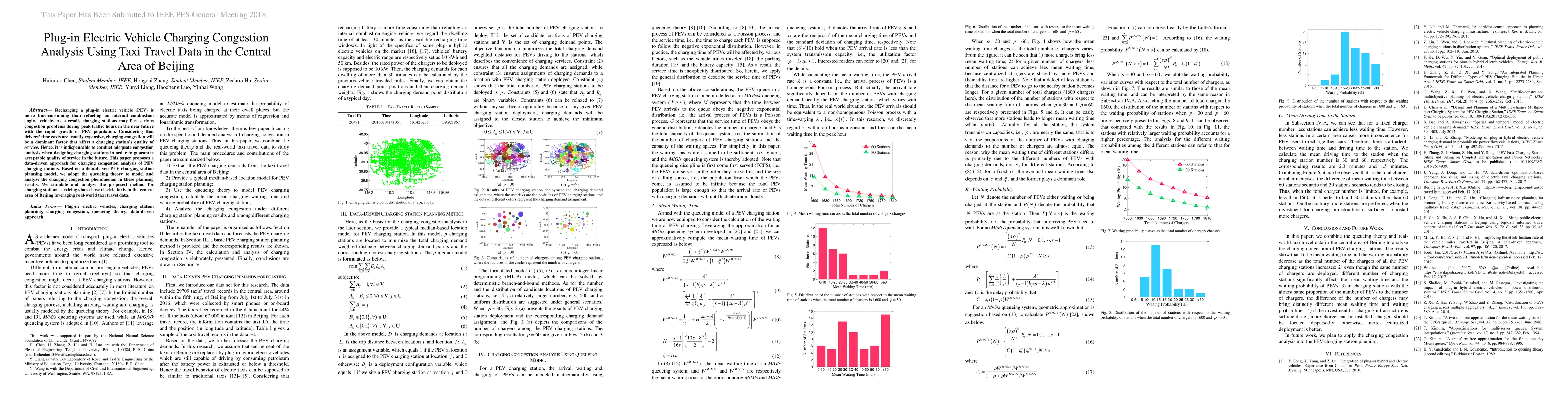 This paper proposes a data-driven approach to analyze charging congestion for plug-in electric vehicles using real-world taxi travel data in Beijing's central area. The study employs queuing theory to model and evaluate congestion issues, aiming to improve the design of future charging stations.