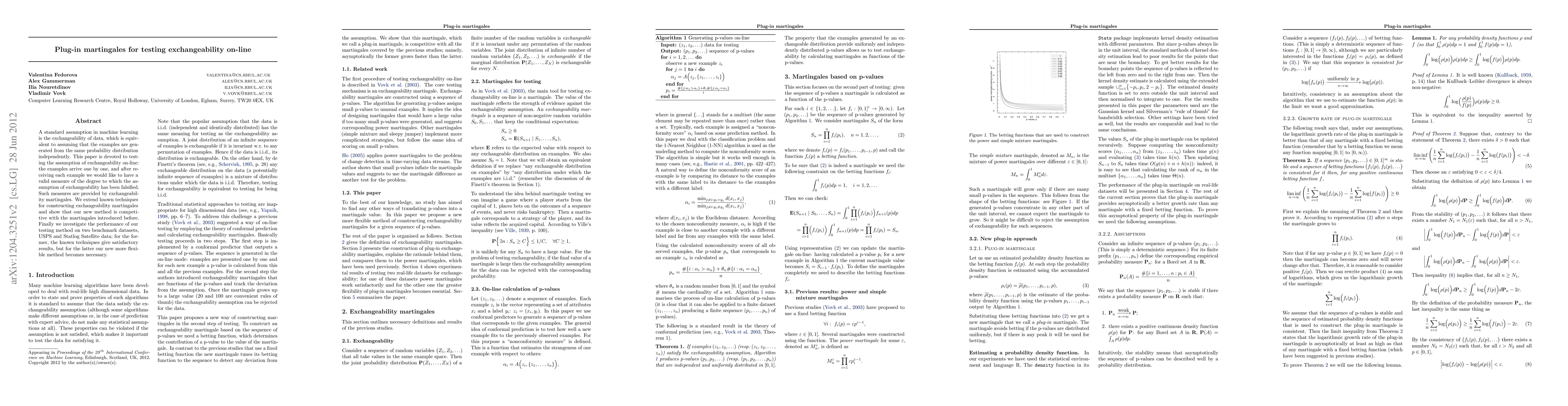 This paper develops plug-in martingales for online testing of data exchangeability, providing a new method that outperforms existing techniques on certain datasets like Statlog Satellite data, while maintaining competitive performance on others like USPS.