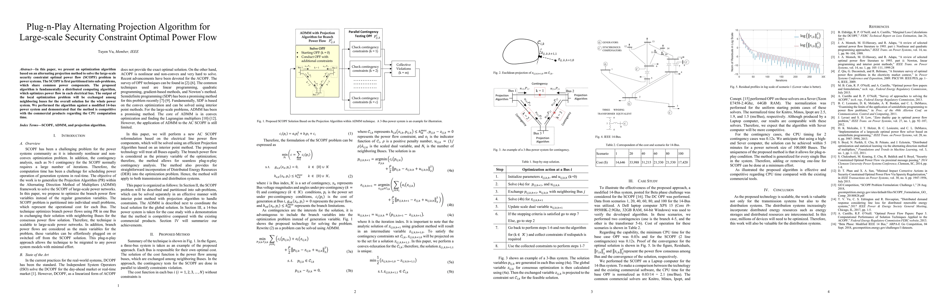 In this paper, we present an optimization algorithm based on an alternating projection method to solve the large-scale security constraint optimal power flow (SCOPF) problem in power systems. The SCOPF is first partitioned into sub-problems, which share common power components. The proposed algorithm is fundamentally a distributed computing algorithm, which optimizes power flow in each electrical bus. The output of the local optimization problem will be exchanged among neighboring buses for the overall solution for the whole power system. We performed the algorithm against a modified 14-bus power system and demonstrated that the method is competitive with the commercial products regarding the CPU computation time.