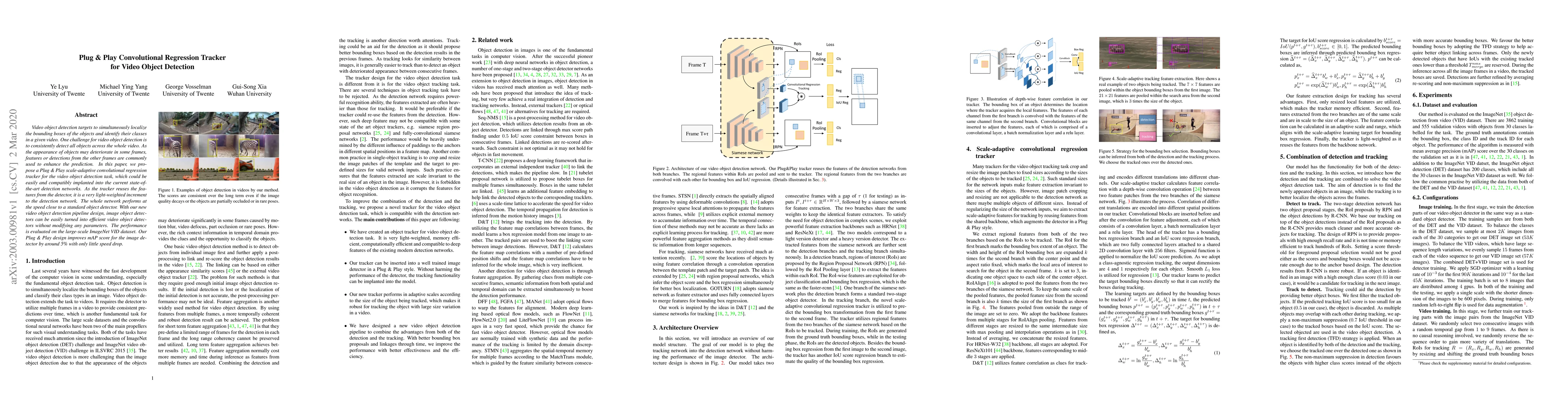 This paper proposes a lightweight Plug & Play scale-adaptive convolutional regression tracker to enhance video object detection by integrating seamlessly into existing detection networks. The tracker improves mAP scores by around 5% on the ImageNet VID dataset with minimal speed reduction.