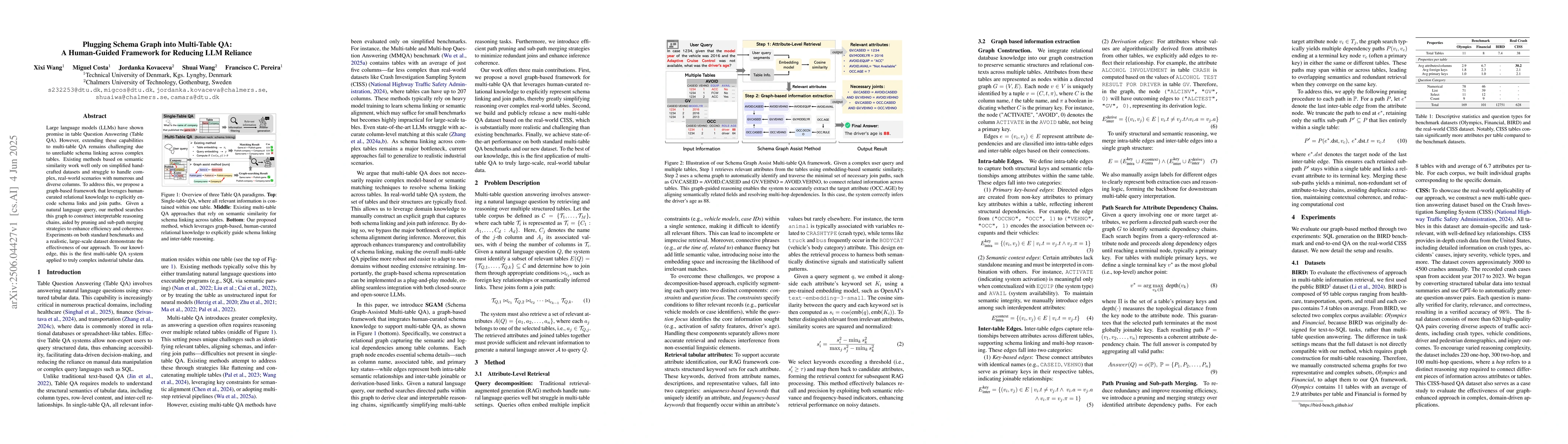 This work is significant as it addresses the challenge of schema linking in multi-table QA, providing a human-guided framework that reduces reliance on LLMs and can be applied to truly complex industrial tabular data.
