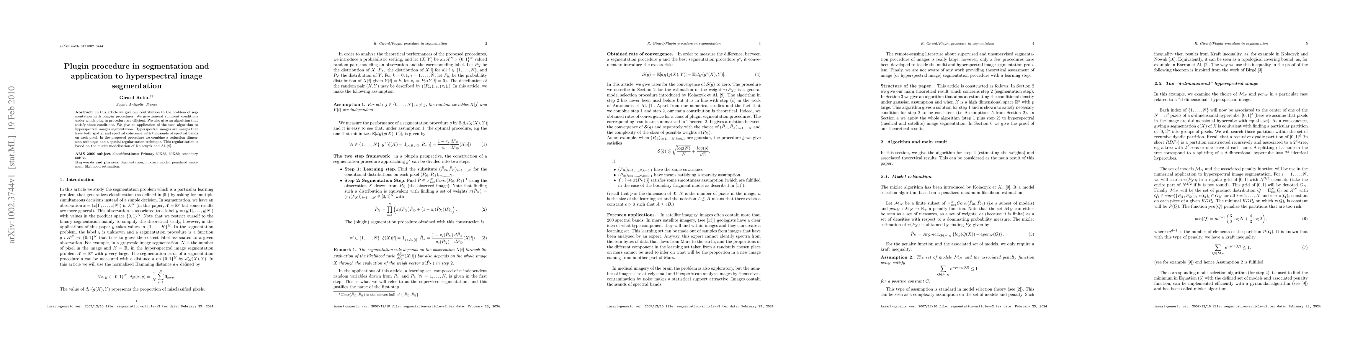 This paper presents a plug-in procedure for efficient segmentation, providing sufficient conditions for its effectiveness and an accompanying algorithm. It applies the algorithm to hyperspectral image segmentation, combining dimensionality reduction and spatial regularization based on mixlet modelization.