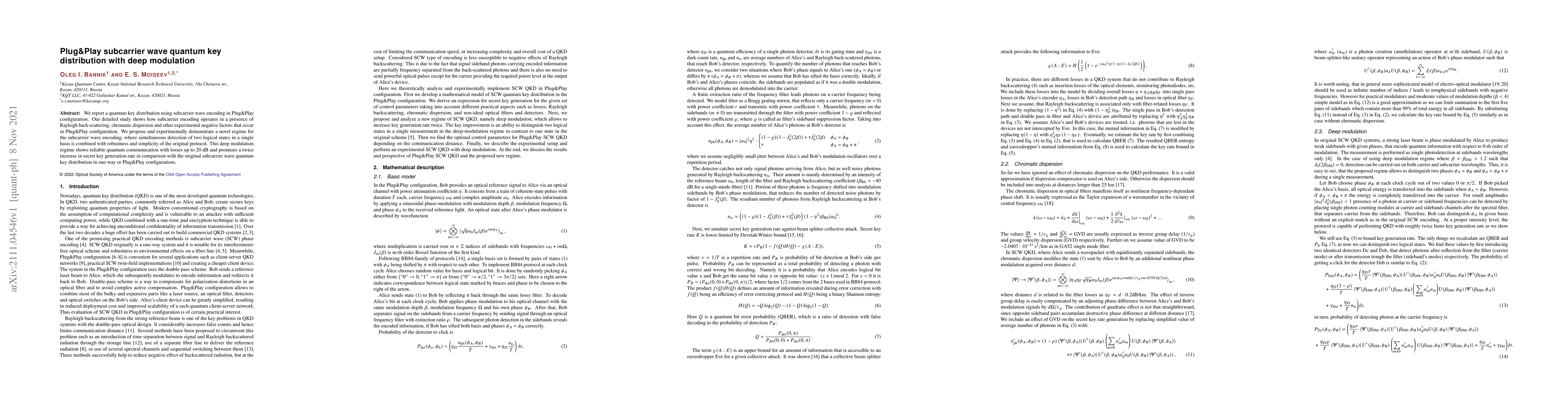 This paper presents a Plug&Play quantum key distribution using subcarrier wave encoding with deep modulation, demonstrating robust performance against experimental challenges like Rayleigh back-scattering and chromatic dispersion. The proposed deep modulation regime enhances secret key generation rate by up to twice compared to traditional methods.