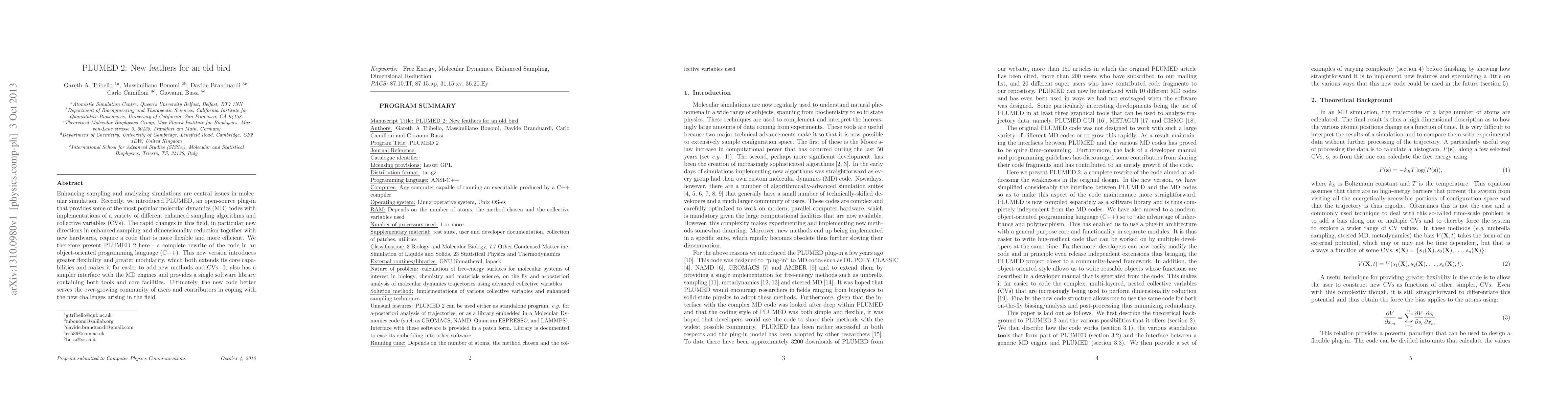 PLUMED 2 is a rewritten version of the original PLUMED software, now implemented in C++ to enhance flexibility, modularity, and efficiency for enhanced sampling and analysis in molecular dynamics simulations. It offers a simpler interface and a unified library, better supporting the expanding community in addressing contemporary challenges.