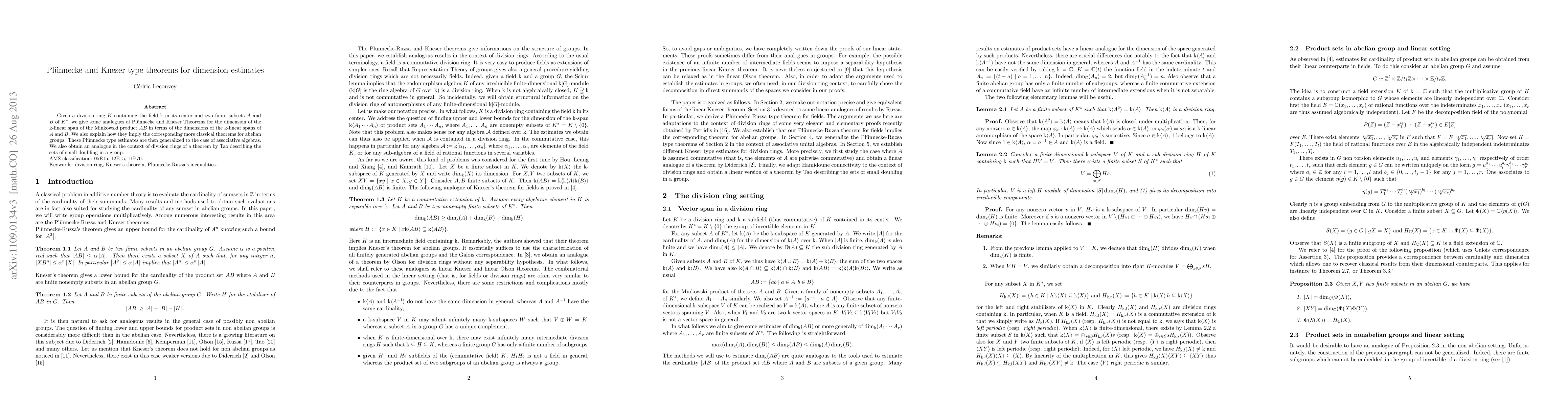 Given a division ring K containing the field k in its center and A,B two finite subsets of K\{0}, we give some analogues of Pl\"unnecke and Kneser theorems for the dimension of the k-linear span of the Minkowski product AB in terms of the dimensions of the k-linear spans of A and B. These Pl\"unnecke type estimates are then generalized to the case of associative algebras. We also obtain an analogue in the context of division rings of a theorem by Tao classifying the sets of small doubling in a group.