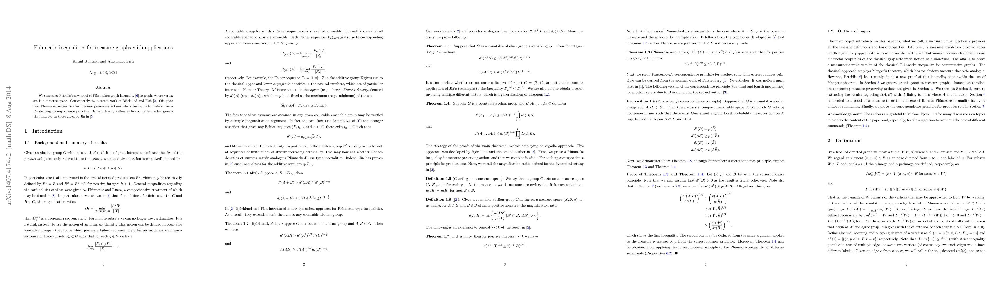 We generalize Petridis's new proof of Pl\"unnecke's graph inequality to graphs whose vertex set is a measure space. Consequently, this gives new Pl\"unnecke inequalities for measure preserving actions which enable us to deduce, via a Furstenberg correspondence principle, Banach density estimates in countable abelian groups that improve on those given by Jin.