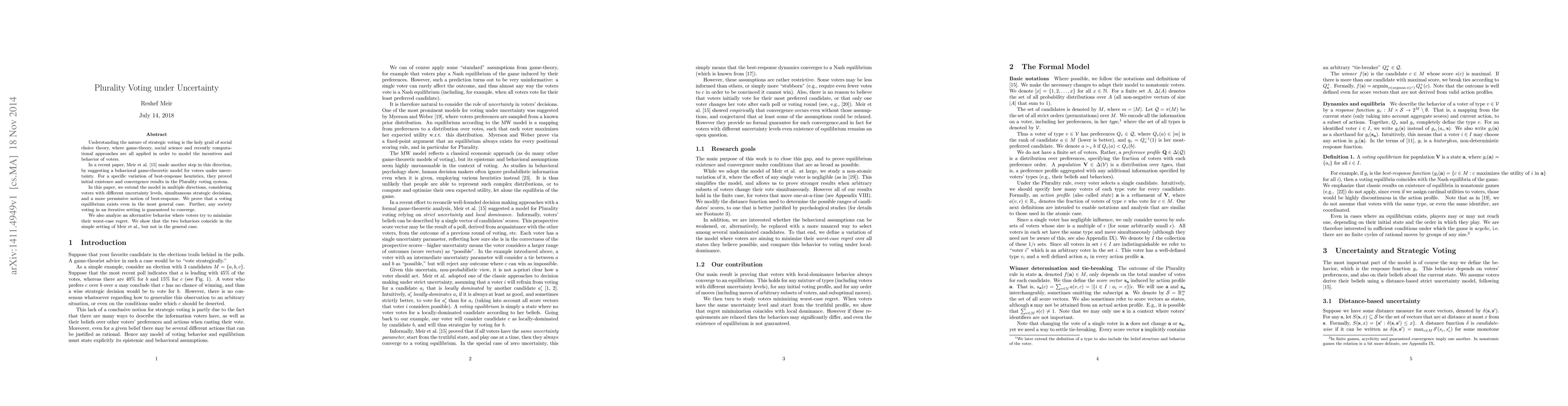 This paper proves that a voting equilibrium exists even in the most general case of Plurality Voting under Uncertainty, and shows that voters with different uncertainty levels can converge to an equilibrium regardless of their initial choices.