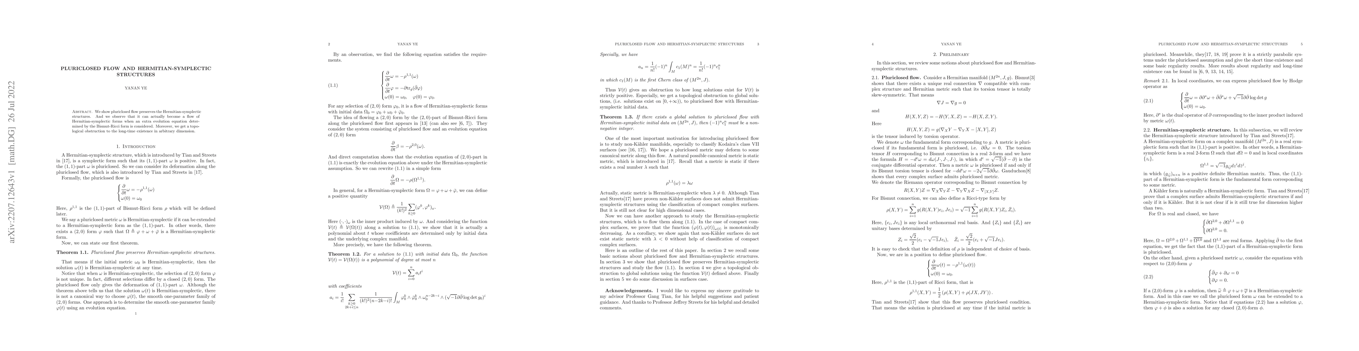 The paper demonstrates that pluriclosed flow maintains Hermitian-symplectic structures and can evolve into a flow of Hermitian-symplectic forms with an additional equation involving the Bismut-Ricci form. It also identifies a topological obstruction preventing the flow's long-term existence in all dimensions.