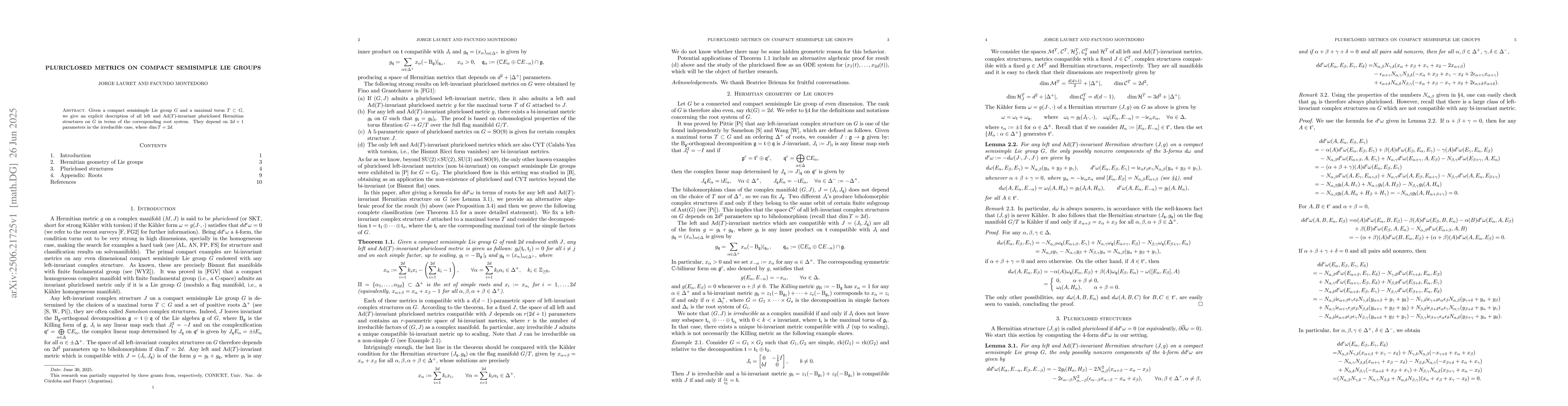 Given a compact semisimple Lie group G and a maximal torus T of G, we give an explicit description of all left and Ad(T)-invariant pluriclosed Hermitian structures on G in terms of the corresponding root system. They depend on 2d+1 parameters in the irreducible case, where dim(T)=2d.