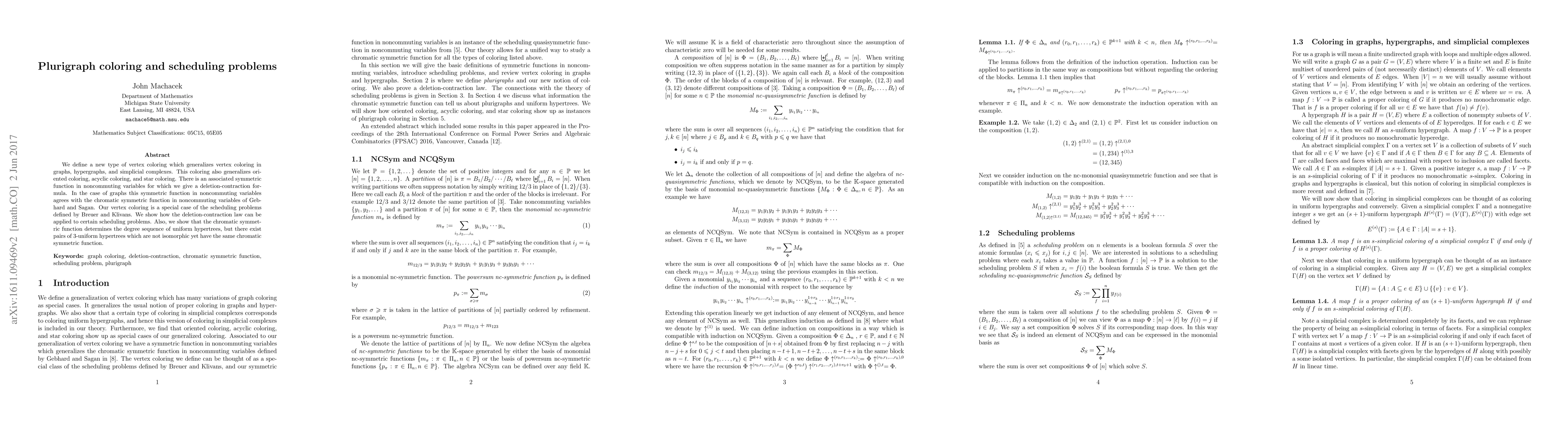 We define a new type of vertex coloring which generalizes vertex coloring in graphs, hypergraphs, and simplicial complexes. This coloring also generalizes oriented coloring, acyclic coloring, and star coloring. There is an associated symmetric function in noncommuting variables for which we give a deletion-contraction formula. In the case of graphs this symmetric function in noncommuting variables agrees with the chromatic symmetric function in noncommuting variables of Gebhard and Sagan. Our vertex coloring is a special case of the scheduling problems defined by Breuer and Klivans. We show how the deletion-contraction law can be applied to scheduling problems. Also, we show that the chromatic symmetric function determines the degree sequence of uniform hypertrees, but there exist pairs on $3$-uniform hypertrees which are not isomorphic yet have the same chromatic symmetric function.