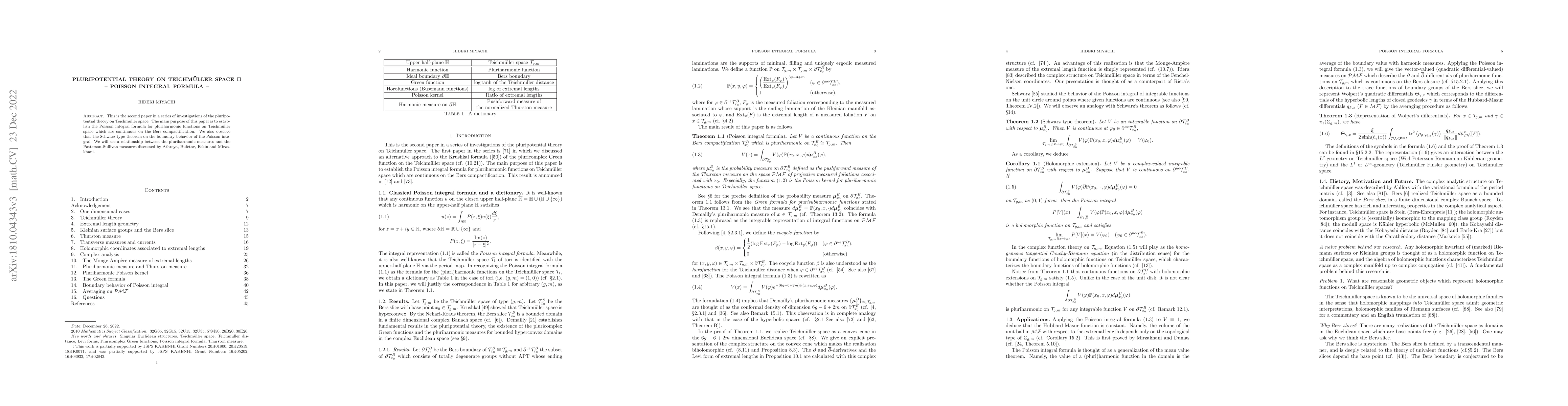 This paper establishes a Poisson integral formula for pluriharmonic functions on Teichmüller space, focusing on those continuous on the Bers compactification. It also explores the boundary behavior of the Poisson integral and its connection to pluriharmonic measures and Patterson-Sullivan measures.