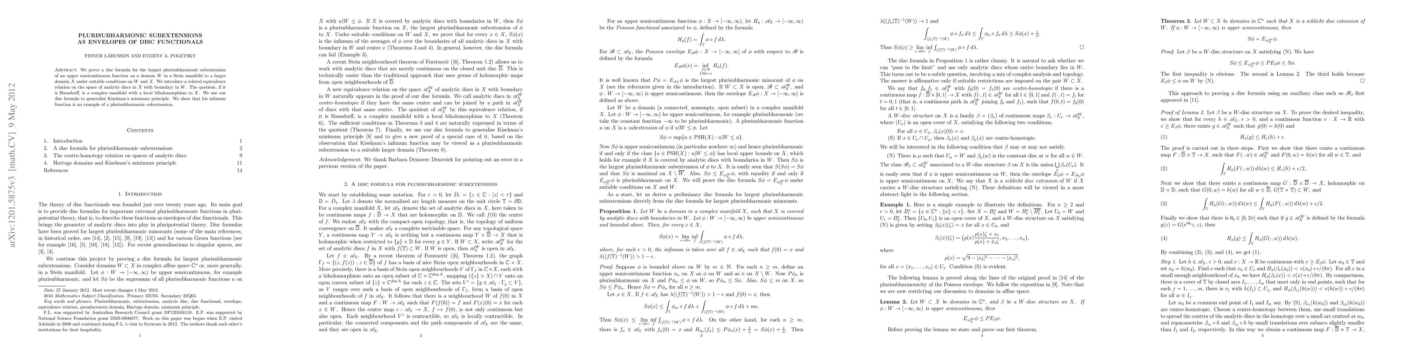 We prove a disc formula for the largest plurisubharmonic subextension of an upper semicontinuous function on a domain $W$ in a Stein manifold to a larger domain $X$ under suitable conditions on $W$ and $X$. We introduce a related equivalence relation on the space of analytic discs in $X$ with boundary in $W$. The quotient, if it is Hausdorff, is a complex manifold with a local biholomorphism to $X$. We use our disc formula to generalise Kiselman's minimum principle. We show that his infimum function is an example of a plurisubharmonic subextension.