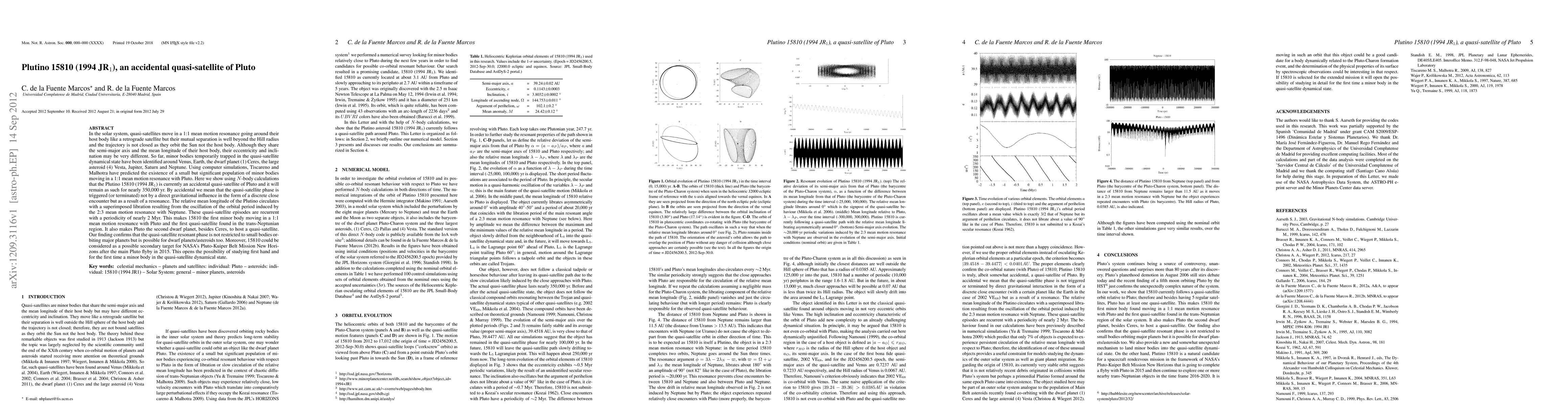 A small asteroid, 15810, is a quasi-satellite of Pluto due to a resonance with Neptune, marking the first time a dwarf planet hosts such an object. The asteroid will remain in this state for nearly 350,000 years.