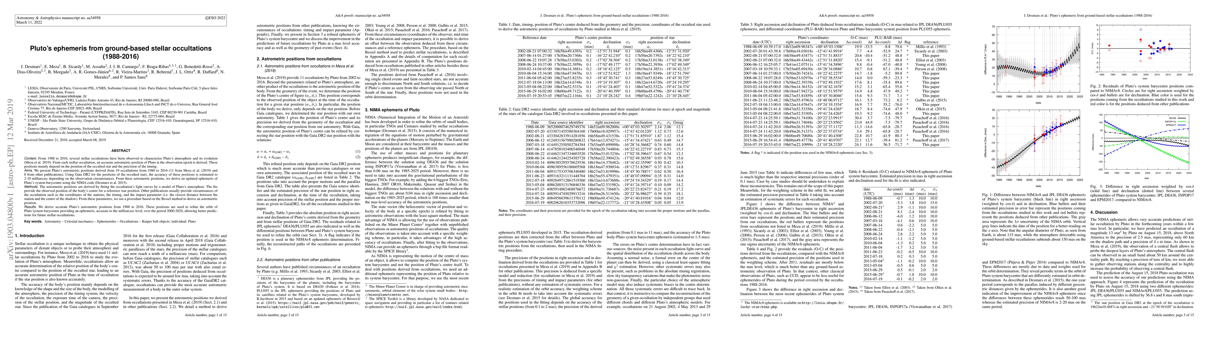 This paper presents Pluto's updated ephemeris derived from 19 stellar occultations observed from 1988 to 2016, providing accurate astrometric positions to refine Pluto's orbit, resulting in an ephemeris accurate to the milliarcsec level for the period 2000-2020.