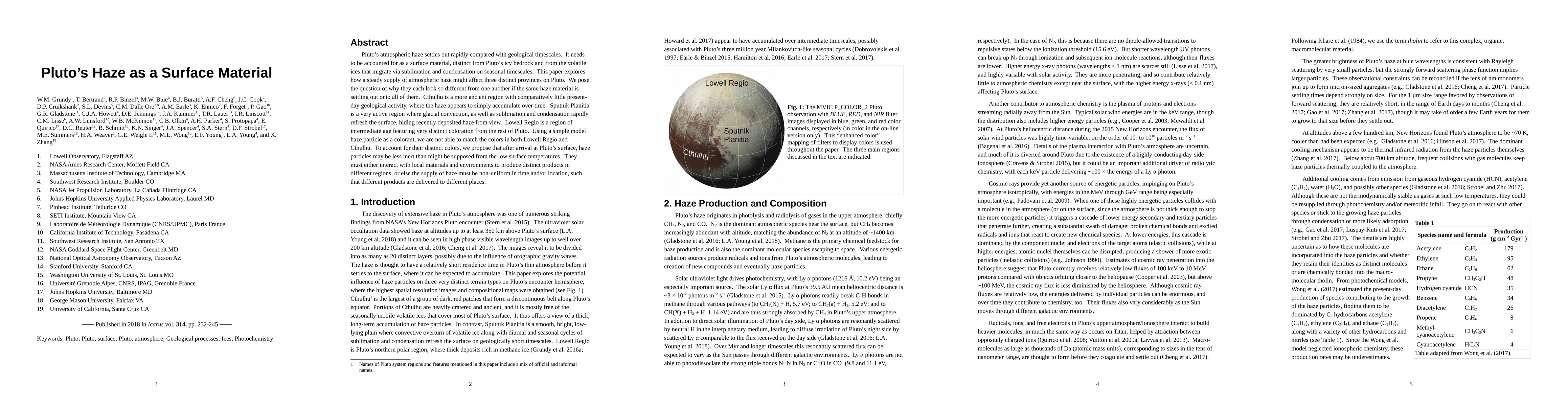 This paper investigates how Pluto's atmospheric haze, which rapidly settles out, influences three distinct surface provinces: Cthulhu, Sputnik Planitia, and Lowell Regio. It finds that despite the same haze material settling on all regions, their appearances differ significantly, suggesting interactions with local materials or non-uniform haze distribution.