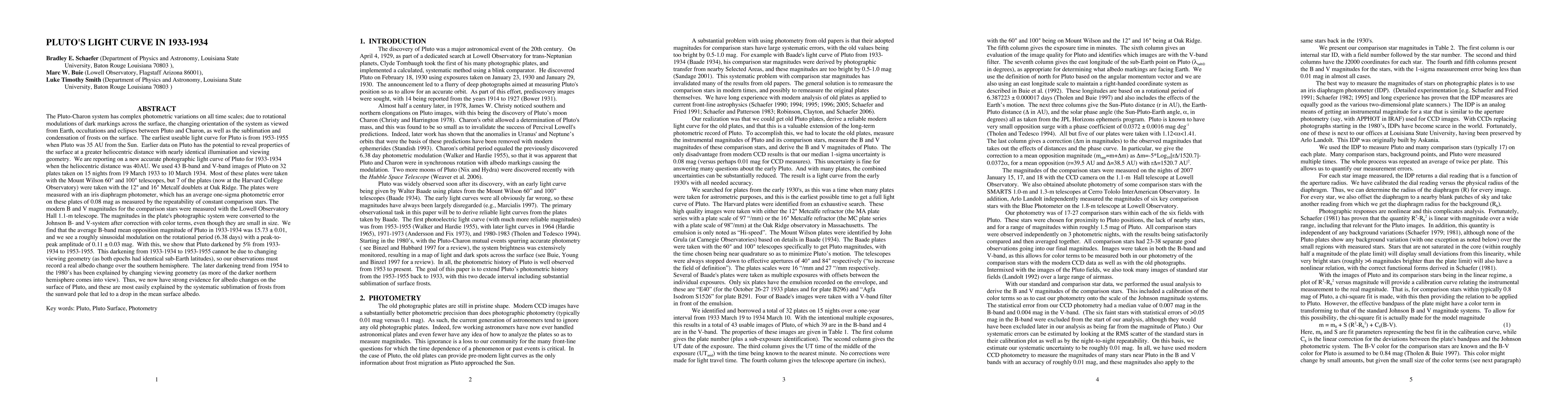 We are reporting on a new accurate photographic light curve of Pluto for 1933-1934 when the heliocentric distance was 40 AU. We used 43 B-band and V-band images of Pluto on 32 plates taken on 15 nights from 19 March 1933 to 10 March 1934. Most of these plates were taken with the Mount Wilson 60" and 100" telescopes, but 7 of the plates (now at the Harvard College Observatory) were taken with the 12" and 16" Metcalf doublets at Oak Ridge. The plates were measured with an iris diaphragm photometer, which has an average one-sigma photometric error on these plates of 0.08 mag as measured by the repeatability of constant comparison stars. The modern B and V magnitudes for the comparison stars were measured with the Lowell Observatory Hall 1.1-m telescope. The magnitudes in the plate's photographic system were converted to the Johnson B- and V-system after correction with color terms, even though they are small in size. We find that the average B-band mean opposition magnitude of Pluto in 1933-1934 was 15.73 +- 0.01, and we see a roughly sinusoidal modulation on the rotational period (6.38 days) with a peak-to-peak amplitude of 0.11 +- 0.03 mag. With this, we show that Pluto darkened by 5% from 1933-1934 to 1953-1955. This darkening from 1933-1934 to 1953-1955 cannot be due to changing viewing geometry (as both epochs had identical sub-Earth latitudes), so our observations must record a real albedo change over the southern hemisphere. The later darkening trend from 1954 to the 1980s has been explained by changing viewing geometry (as more of the darker northern hemisphere comes into view). Thus, we now have strong evidence for albedo changes on the surface of Pluto, and these are most easily explained by the systematic sublimation of frosts from the sunward pole that led to a drop in the mean surface albedo.