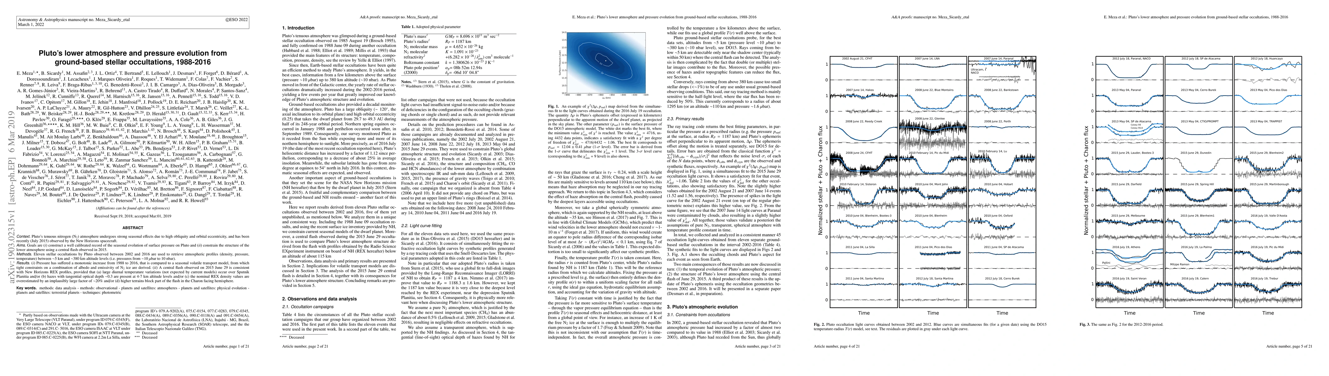 This study analyzes eleven Pluto stellar occultations from 1988 to 2016 to construct a record of seasonal surface pressure evolution and lower atmospheric structure, revealing a monotonic pressure increase over time. The central flash observed in 2015 suggests large diurnal temperature variations or haze presence, challenging existing models.