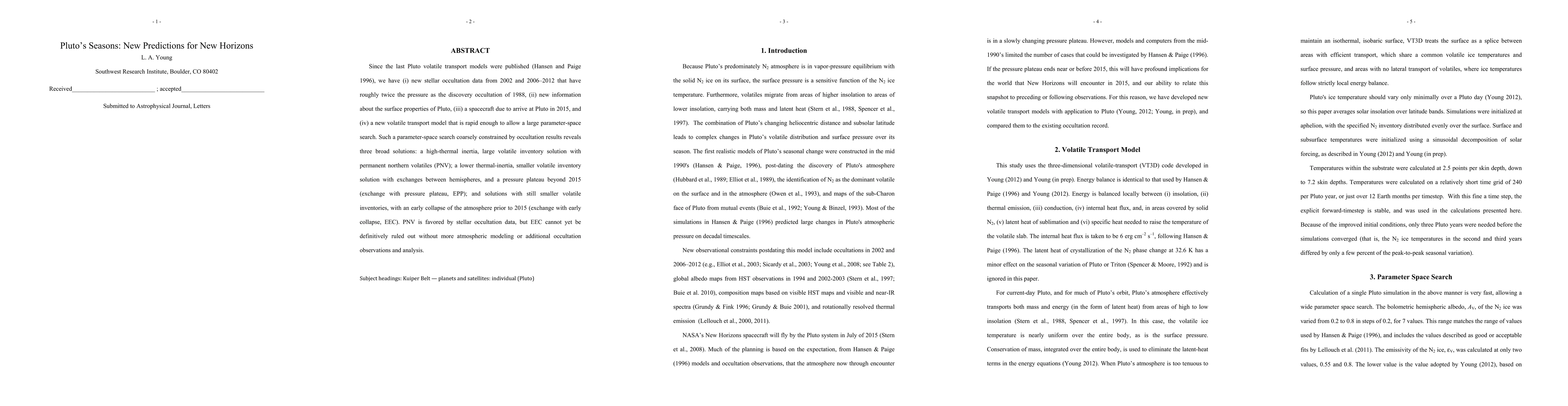 This paper updates Pluto's volatile transport models using new stellar occultation data, surface property information, and a spacecraft's upcoming arrival. The new model suggests three main scenarios for Pluto's atmosphere, favoring a permanent northern volatiles solution but noting that early atmospheric collapse cannot be ruled out without further analysis.