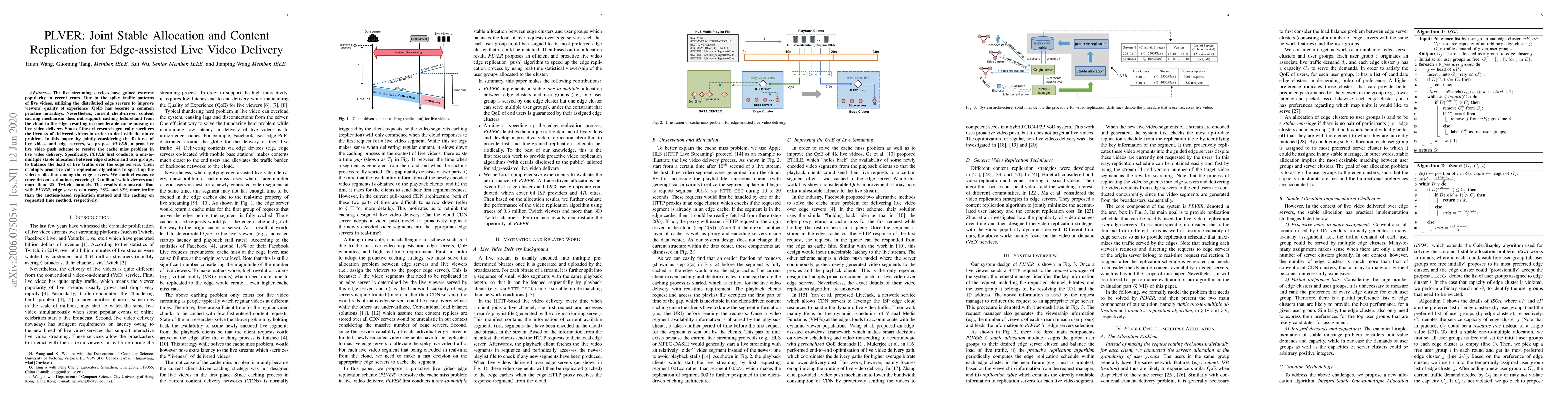 The PLVER scheme improves live video delivery by jointly allocating edge servers to users and replicating content proactively, reducing cache misses by 28% compared to existing methods.