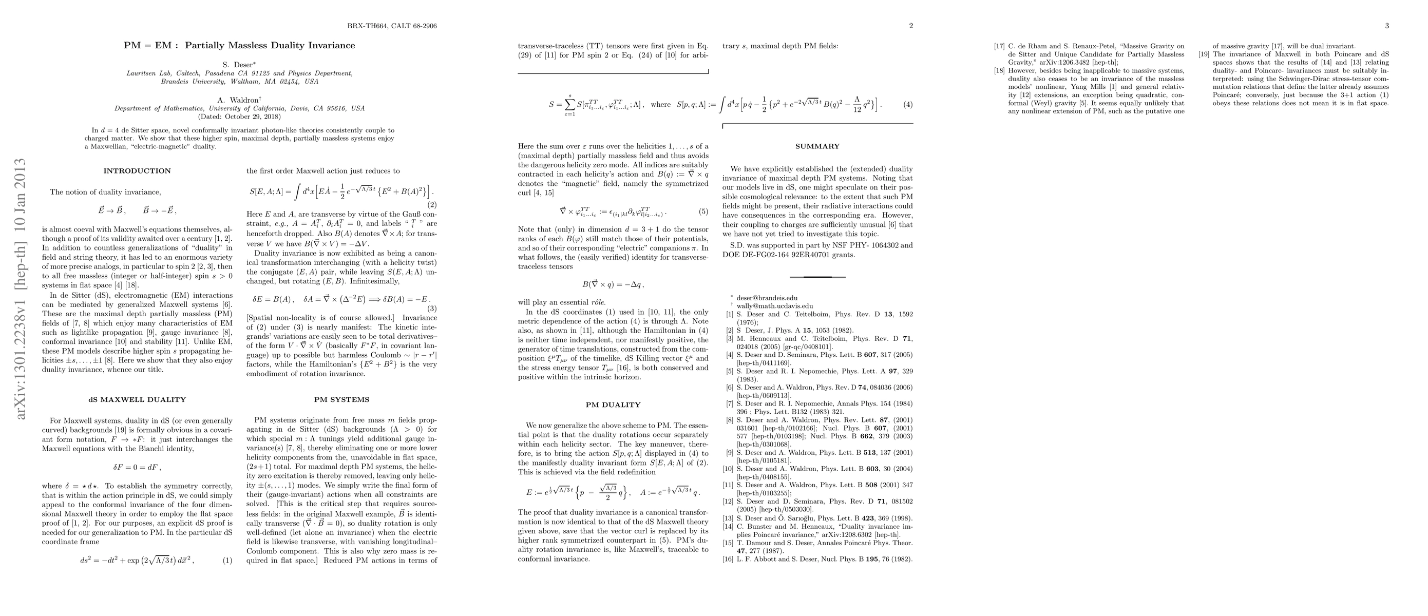 This paper explores conformally invariant photon-like theories in d=4 de Sitter space that couple to charged matter, demonstrating that these partially massless systems exhibit a Maxwellian duality, akin to electric-magnetic duality. The findings reveal a novel duality invariance in higher spin, maximal depth partially massless systems.
