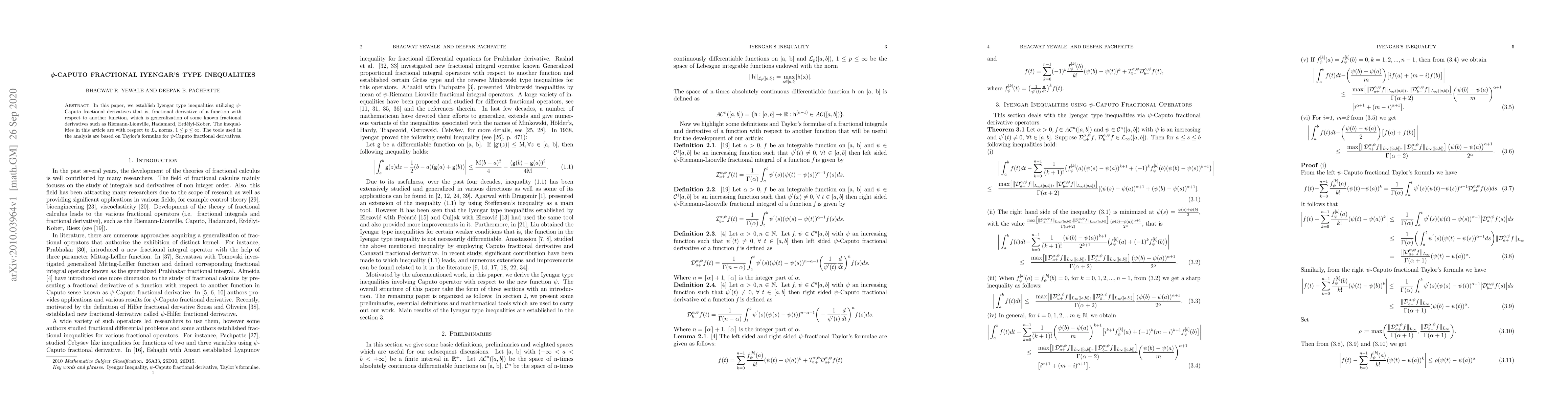 This research extends existing fractional derivative concepts by incorporating $\psi$-Caputo derivatives and generalizing Iyengar's inequalities, providing a more versatile tool for fractional calculus problems.