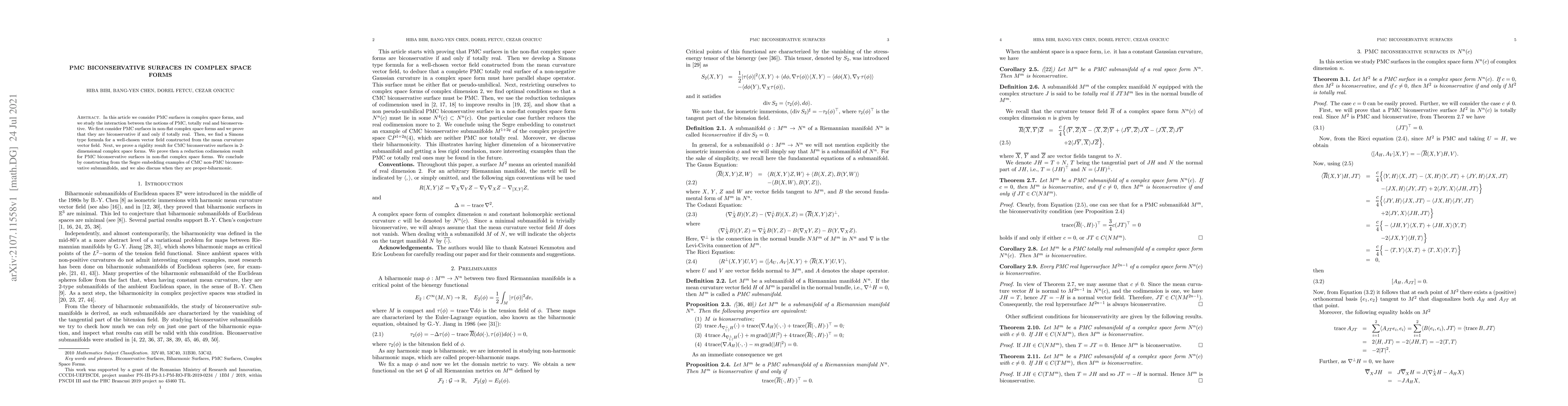 This paper investigates PMC surfaces in complex space forms, proving that PMC surfaces are biconservative if they are also totally real. It establishes a Simons type formula for vector fields derived from mean curvature, demonstrates rigidity for CMC biconservative surfaces in 2-dimensional complex space forms, and concludes with constructions of CMC non-PMC biconservative submanifolds and their proper-biharmonic properties.
