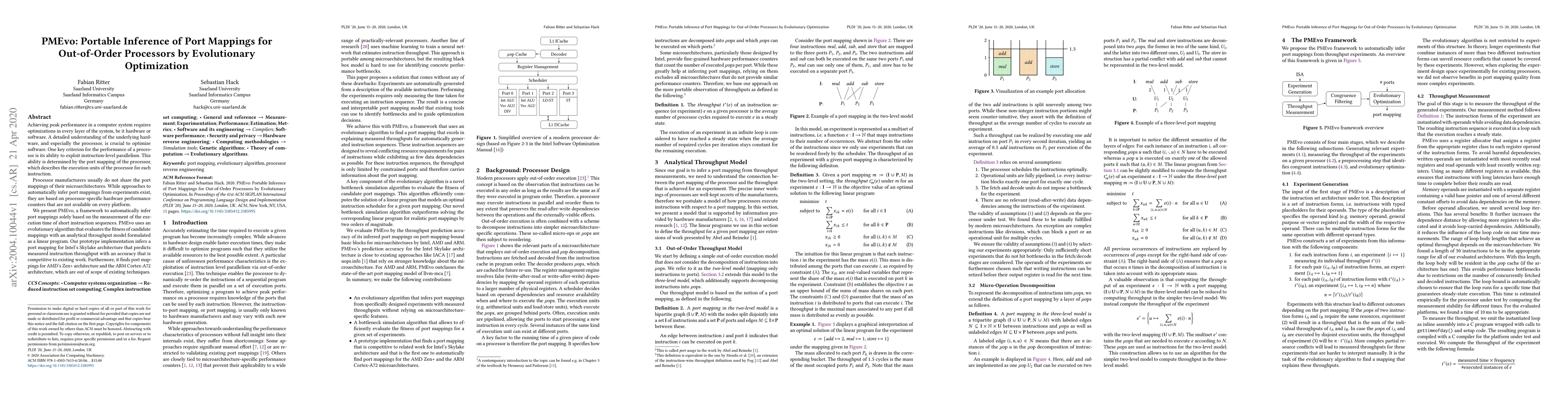 Achieving peak performance in a computer system requires optimizations in every layer of the system, be it hardware or software. A detailed understanding of the underlying hardware, and especially the processor, is crucial to optimize software. One key criterion for the performance of a processor is its ability to exploit instruction-level parallelism. This ability is determined by the port mapping of the processor, which describes the execution units of the processor for each instruction. Processor manufacturers usually do not share the port mappings of their microarchitectures. While approaches to automatically infer port mappings from experiments exist, they are based on processor-specific hardware performance counters that are not available on every platform. We present PMEvo, a framework to automatically infer port mappings solely based on the measurement of the execution time of short instruction sequences. PMEvo uses an evolutionary algorithm that evaluates the fitness of candidate mappings with an analytical throughput model formulated as a linear program. Our prototype implementation infers a port mapping for Intel's Skylake architecture that predicts measured instruction throughput with an accuracy that is competitive to existing work. Furthermore, it finds port mappings for AMD's Zen+ architecture and the ARM Cortex-A72 architecture, which are out of scope of existing techniques.