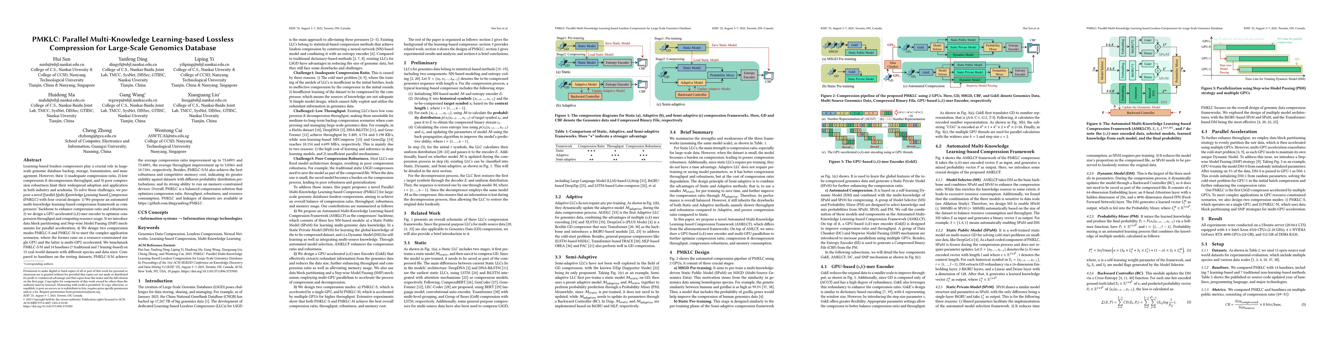 Learning-based lossless compressors play a crucial role in large-scale genomic database backup, storage, transmission, and management. However, their 1) inadequate compression ratio, 2) low compression \& decompression throughput, and 3) poor compression robustness limit their widespread adoption and application in both industry and academia. To solve those challenges, we propose a novel \underline{P}arallel \underline{M}ulti-\underline{K}nowledge \underline{L}earning-based \underline{C}ompressor (PMKLC) with four crucial designs: 1) We propose an automated multi-knowledge learning-based compression framework as compressors' backbone to enhance compression ratio and robustness; 2) we design a GPU-accelerated ($s$,$k$)-mer encoder to optimize compression throughput and computing resource usage; 3) we introduce data block partitioning and Step-wise Model Passing (SMP) mechanisms for parallel acceleration; 4) We design two compression modes PMKLC-S and PMKLC-M to meet the complex application scenarios, where the former runs on a resource-constrained single GPU and the latter is multi-GPU accelerated. We benchmark PMKLC-S/M and 14 baselines (7 traditional and 7 leaning-based) on 15 real-world datasets with different species and data sizes. Compared to baselines on the testing datasets, PMKLC-S/M achieve the average compression ratio improvement up to 73.609\% and 73.480\%, the average throughput improvement up to 3.036$\times$ and 10.710$\times$, respectively. Besides, PMKLC-S/M also achieve the best robustness and competitive memory cost, indicating its greater stability against datasets with different probability distribution perturbations, and its strong ability to run on memory-constrained devices.