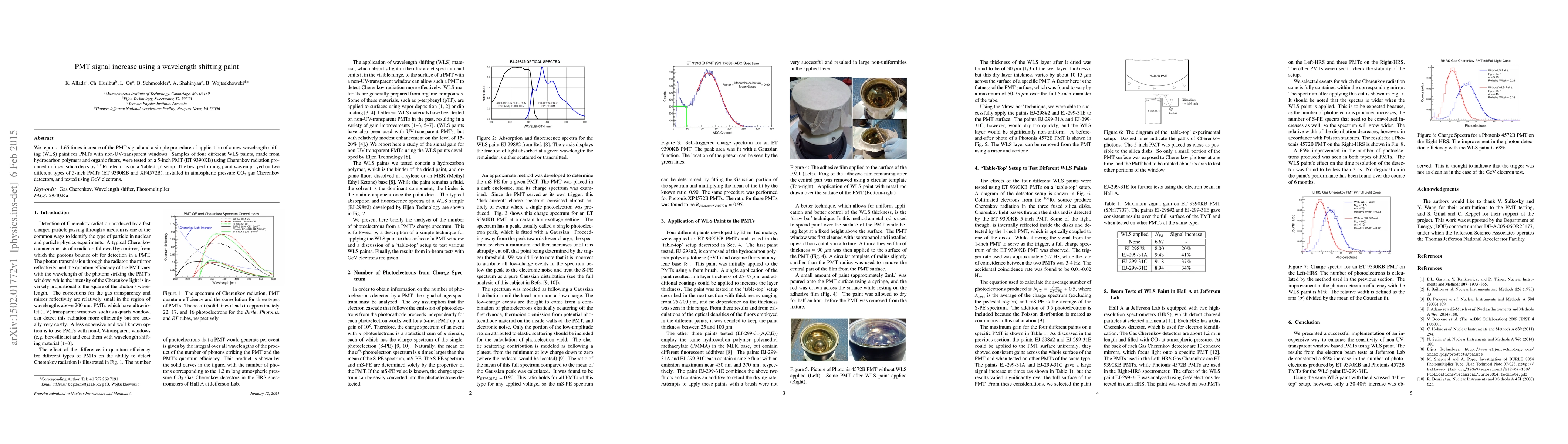 We report a 1.65 times increase of the PMT signal and a simple procedure of application of a new wavelength shifting (WLS) paint for PMTs with non-UV-transparent windows. Samples of four different WLS paints, made from hydrocarbon polymers and organic fluors, were tested on a 5-inch PMT (ET 9390KB) using Cherenkov radiation produced in fused silica disks by $^{106}$Ru electrons on a `table-top' setup. The best performing paint was employed on two different types of 5-inch PMTs (ET 9390KB and XP4572B), installed in atmospheric pressure CO$_2$ gas Cherenkov detectors, and tested using GeV electrons.