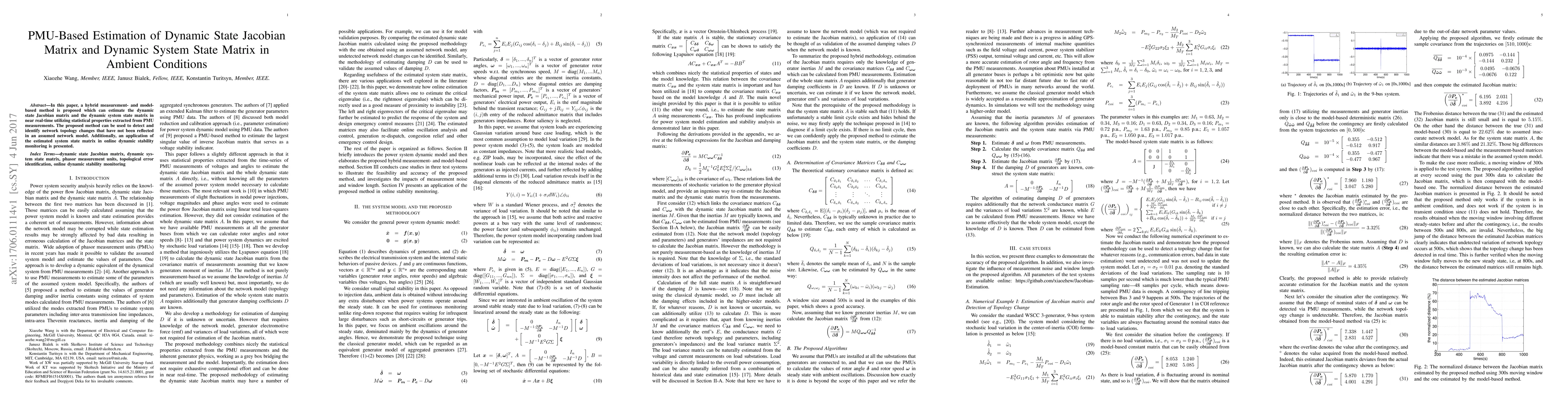 Researchers propose a method to estimate dynamic system state matrices from power grid measurements in near real-time, enabling detection of network topology changes and online stability monitoring.