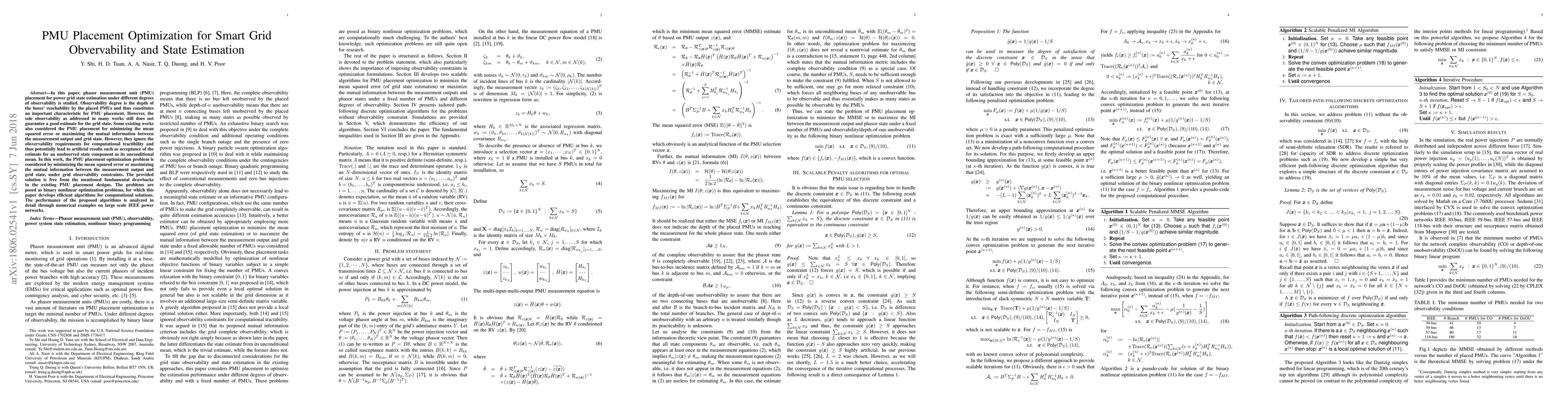 This paper optimizes the placement of phasor measurement units (PMUs) in smart grids to enhance observability and state estimation, addressing the limitations of existing methods that ignore observability constraints. It proposes algorithms to minimize error or maximize mutual information under observability constraints, validated through large-scale IEEE network simulations.