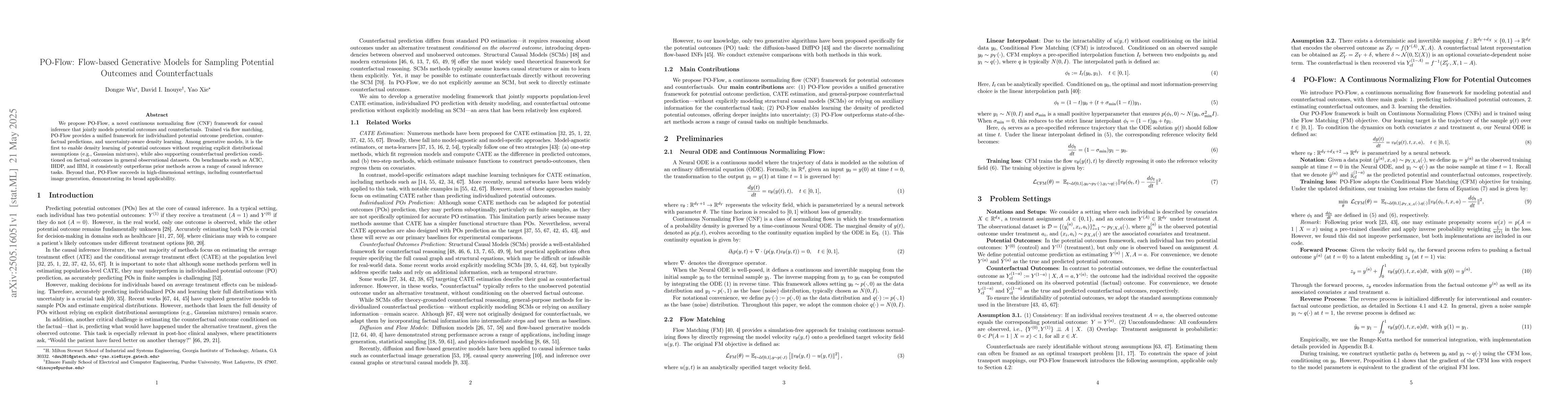 The research introduces PO-Flow, a continuous normalizing flow (CNF) framework for causal inference that models potential outcomes and counterfactuals jointly. It's trained via flow matching, offering a unified approach for individualized potential outcome prediction, counterfactual predictions, and uncertainty-aware density learning.