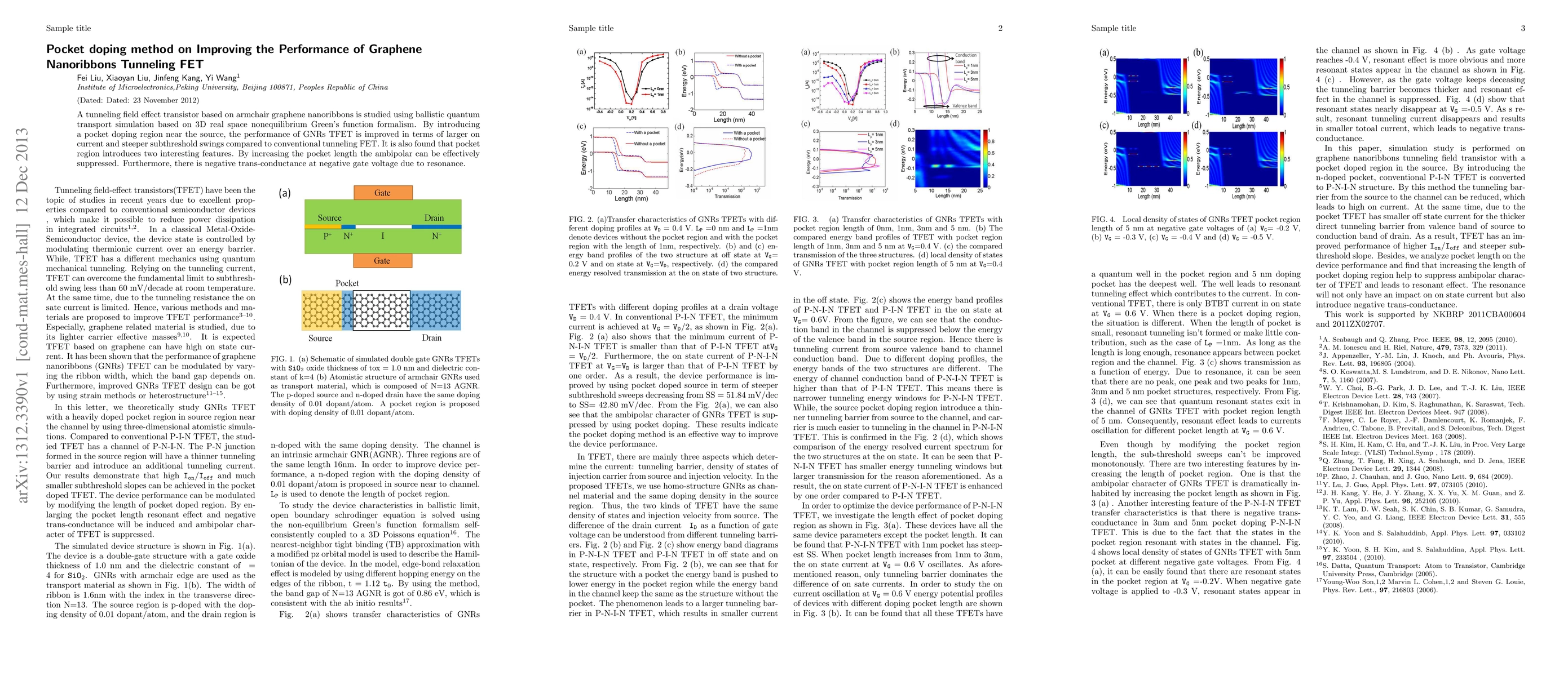 A tunneling field effect transistor based on armchair graphene nanoribbons is studied using ballistic quantum transport simulation based on 3D real space nonequilibrium Green's function formalism. By introducing a pocket doping region near the source, the performance of GNRs TFET is improved in terms of larger on current and steeper subthreshold swings compared to conventional tunneling FET. It is also found that pocket region introduces two interesting features. By increasing the pocket length the ambipolar can be effectively suppressed. Furthermore, there is negative trans-conductance at negative gate voltage due to resonance.