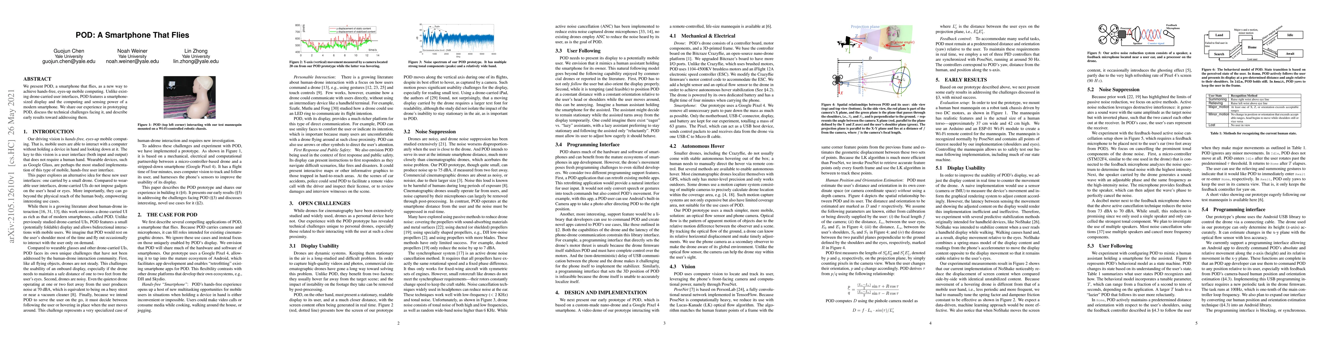 POD is a flying smartphone prototype designed for hands-free, eyes-up mobile computing, combining a smartphone's display and capabilities with autonomous flight. The paper discusses the technical challenges encountered during its development and initial results in overcoming them.