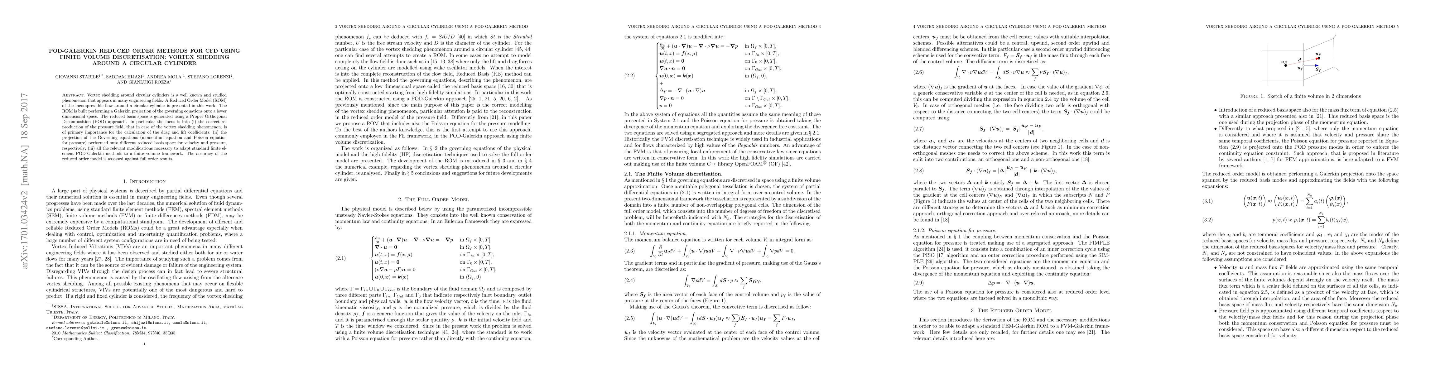 This paper presents a Reduced Order Model (ROM) for simulating vortex shedding around a circular cylinder using Pod-Galerkin methods in a finite volume framework. The focus is on accurately reproducing the pressure field for drag and lift calculations and adapting standard methods to suit finite volume discretizations.