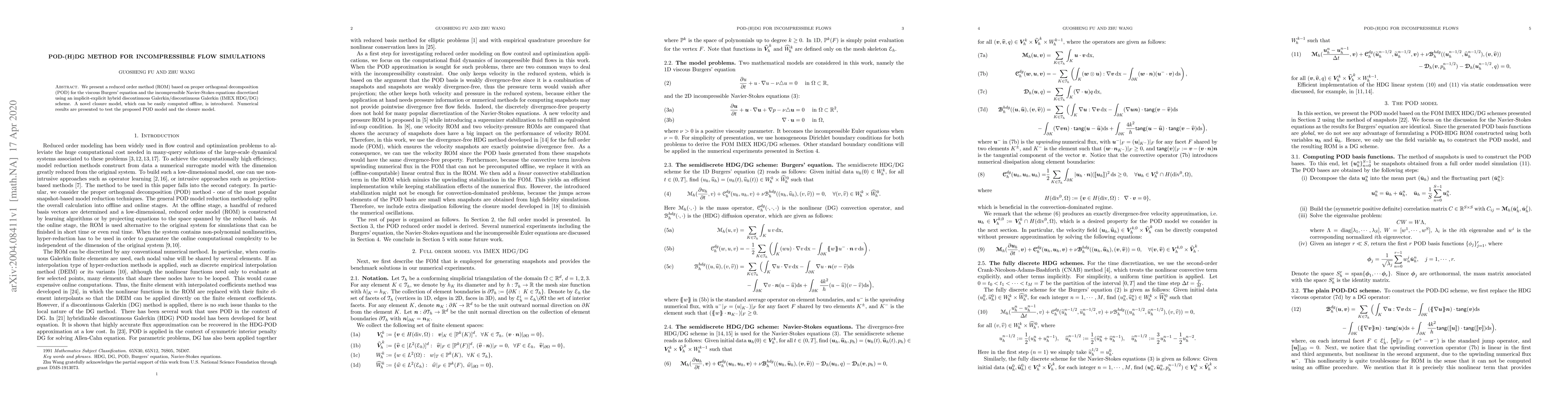 This paper introduces a reduced order method (ROM) based on proper orthogonal decomposition (POD) for simulating incompressible flows, specifically the viscous Burgers' equation and the incompressible Navier-Stokes equations using an IMEX HDG/DG scheme. A novel offline-computed closure model is also presented, and numerical results validate the effectiveness of the proposed POD model and closure model.